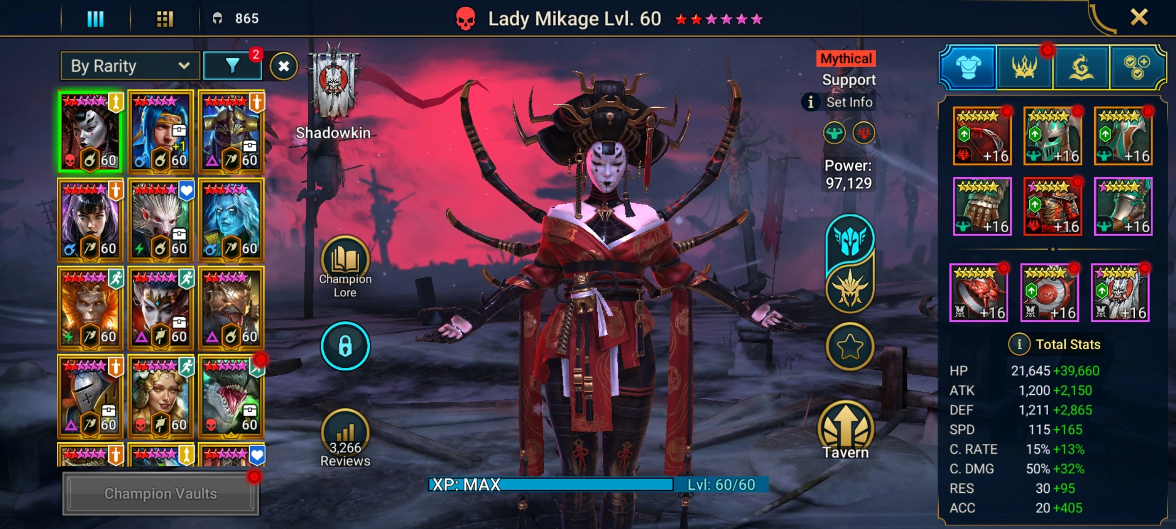 [1 Mythical Champions][8.85M] Lady Mikage + 97 LEGENDARY (Arb,Lamasu,Krisk,Baron,Yakarl(6*),Tuhanarak,Tholin,Fabian,Michinaki,Eostrid,Trunda x2,Oella,Nekmo,Rotos,Islin,Helicath x2...) + 1k UNM + SHARDS(99a+20v+7s)