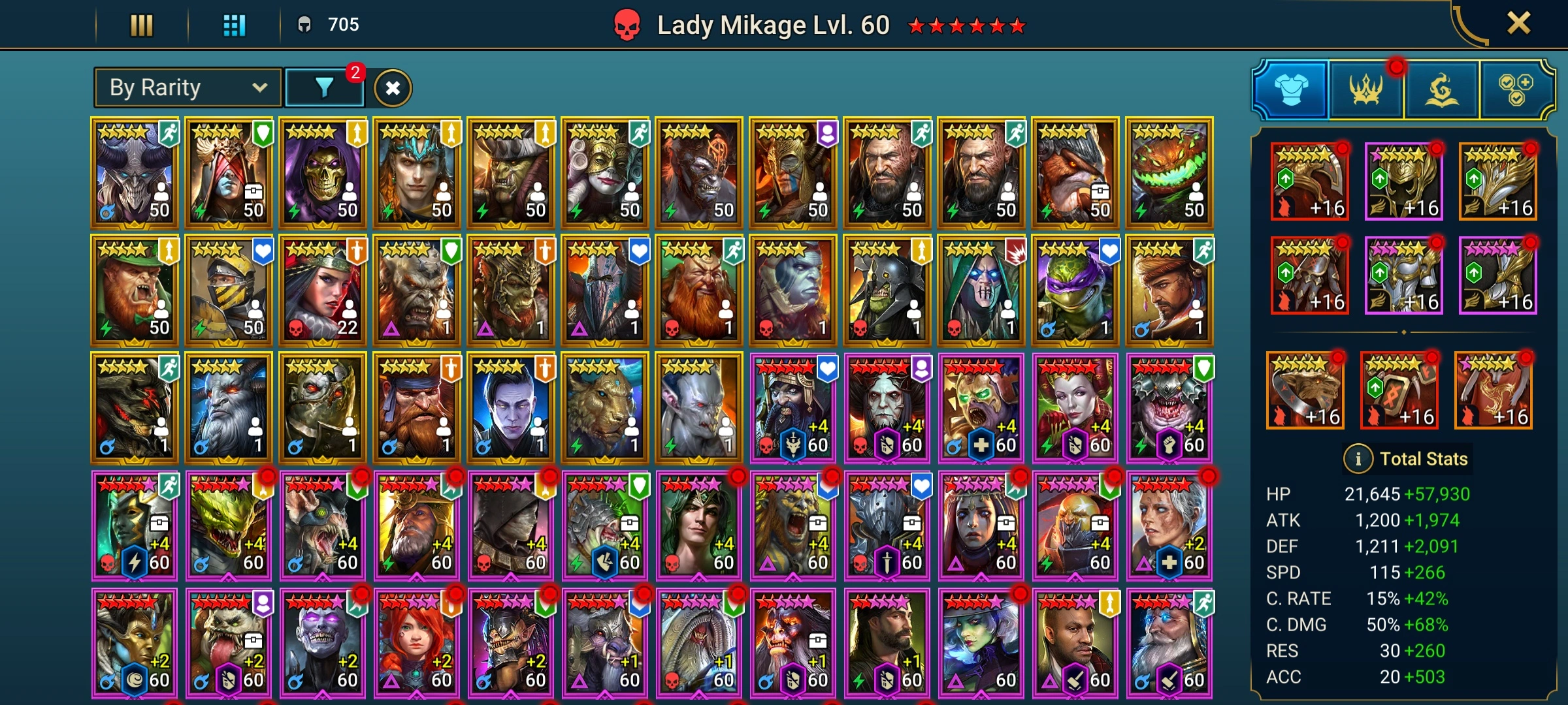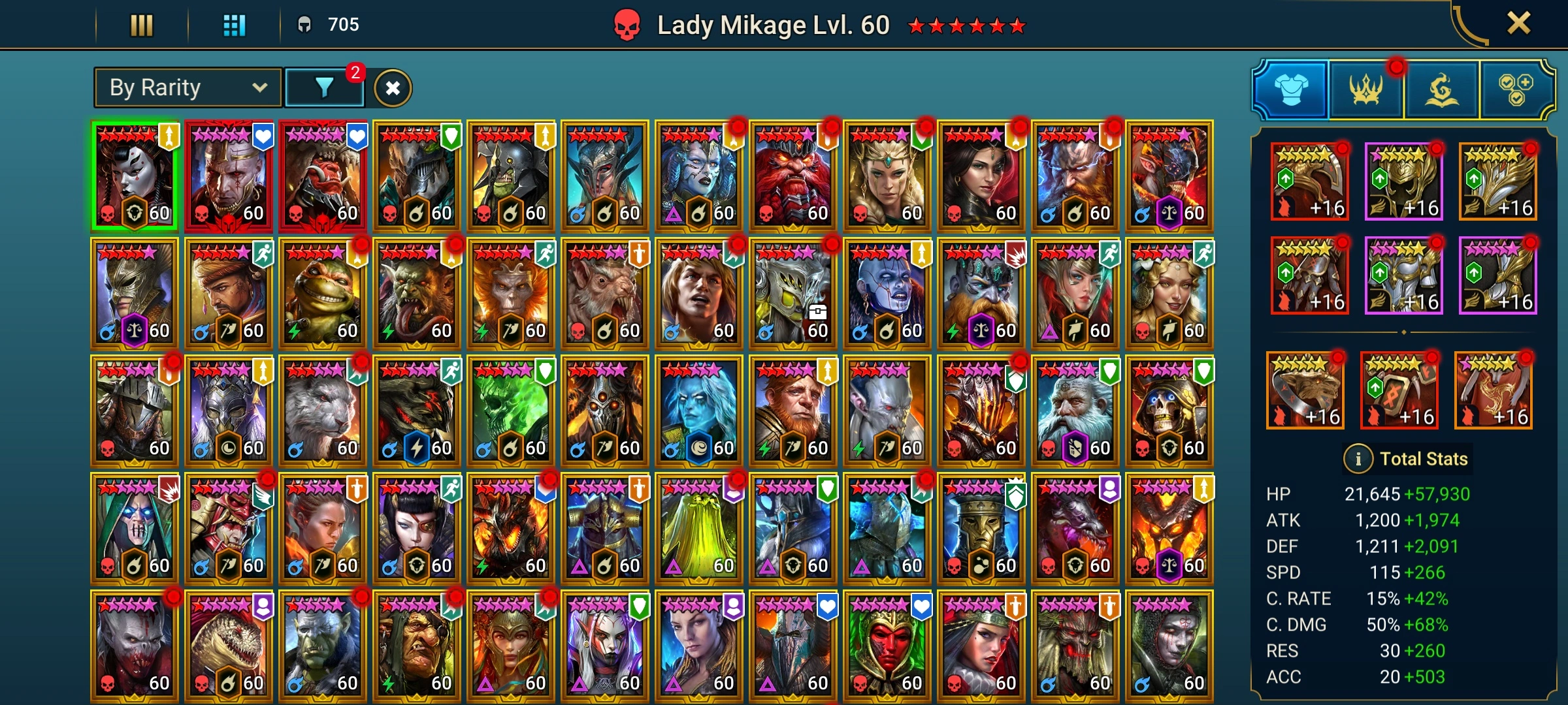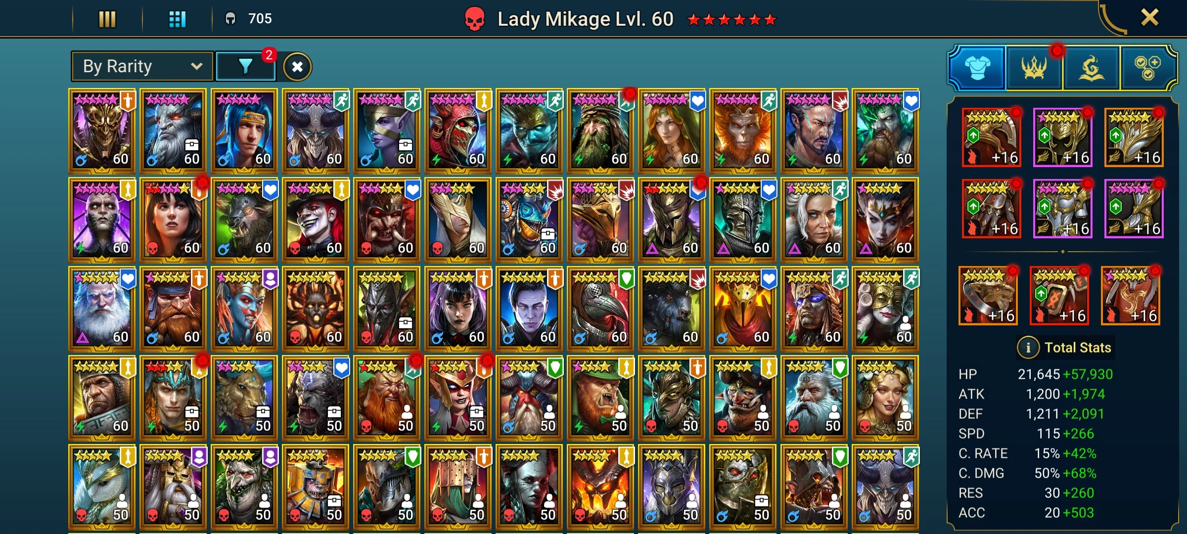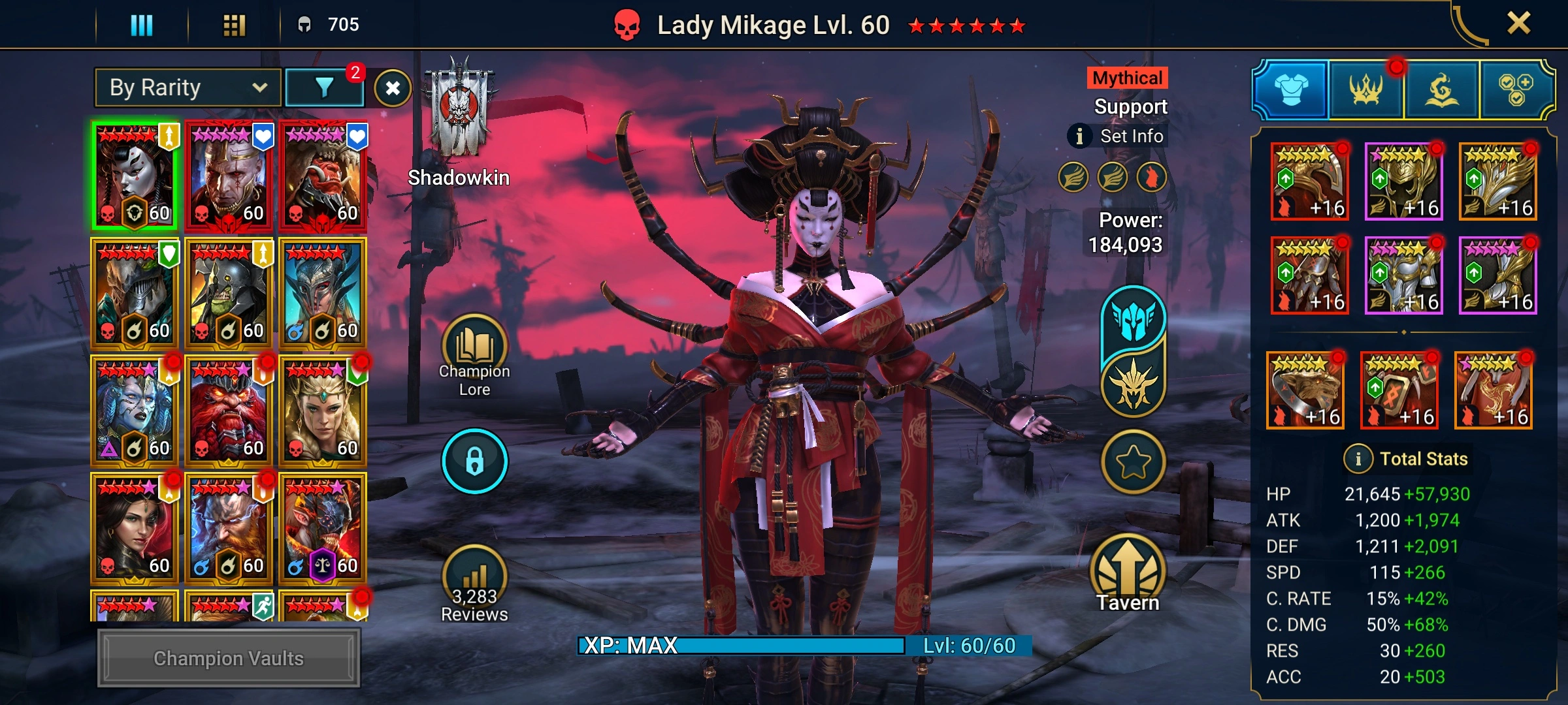 [3 Mythical Champions][11.74M] Lady Mikage(6*),Ashnar,Embrys + 148 LEGENDARY (Marichka,Titus,Lamasu,Tormin,SG,Nic+Noella,Armanz(5*)/x2,Staltus(6*)/x2,Kymar x3,Gnut,Robar(6*)/x2,Elva x2,Skyl(6*),Othorion(5*),Tholin(5*),Vulkanos...) + 1-2k UNM + RTA AVATAR