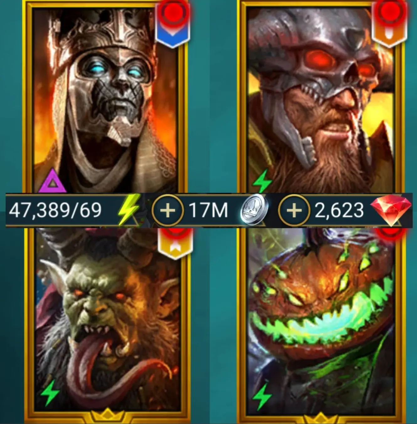 Narses,Harvest Jack,Belz,Katonn!47K Energy!2600 Gems!