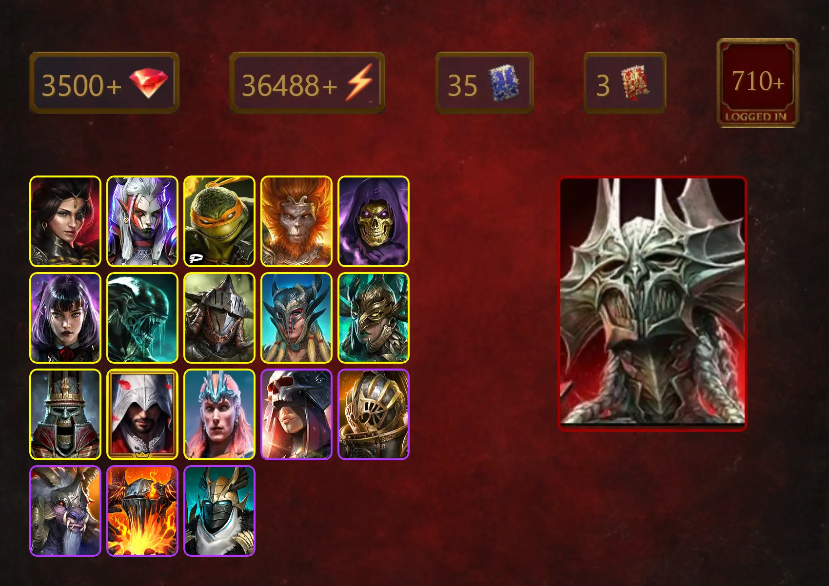 [STARTER]Georgid+Blood Marchioness Mina+Adelyn+Visix+Michelangelo+Wukong+Skeletor+Alice+Xenomorph+Rathalos+Scyl+39Epics