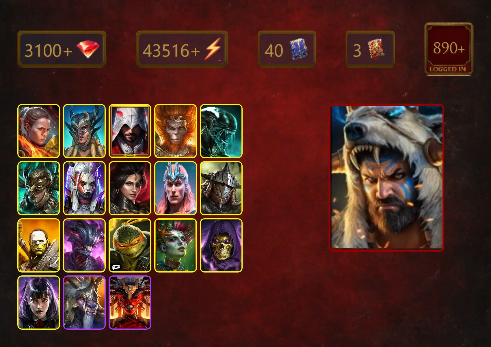 [STARTER]Helicath+Arne the White+Ronda+Scyl+Ezio Auditore+Belletar Mage-slayer+Wukong+Xenomorph+Leminisi the Gold-Wing+43Epics