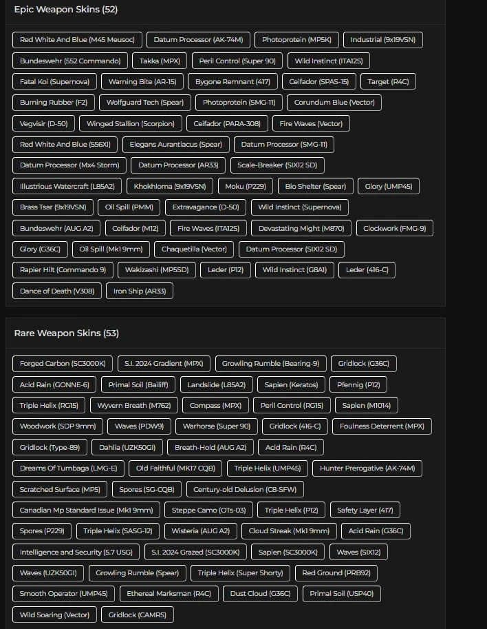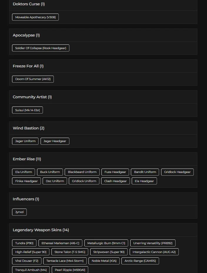 204 LVL ⸱ 21X BLACK ICES ⸱ 3X RACER ⸱ 14X SEASONALS ⸱ 8X UNIVERSALS ⸱ 7X ELITES ⸱ 3X PLATINUM ⸱ 53 OPERATORS ⸱ 189K RENOWN ⸱ FA