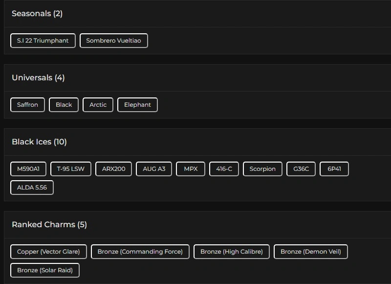 65 Operators 10x Black Ice 4 Universal Skins 1 Pro League Sets 4516 Renown Full Access โ