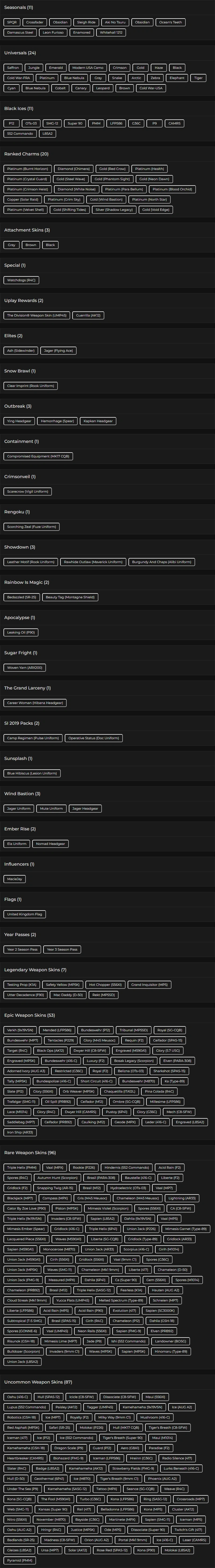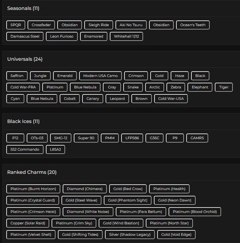 62 Operators 11x Black Ice 24 Universal Skins 2 Elite 3782 Renown Full Access โ
