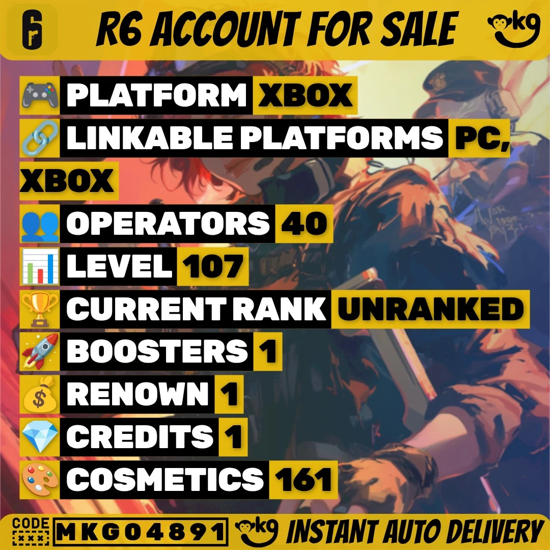⚡ R6S 🎯【 PC/XBOX 】 Level 144 ✅ 21 BLACK ICE + 161 SKINS + Ranked Ready ✅ 17 Seasonals + 1 Universals + 1 Elites + 🔑 Full Access and Instant Delivery !MKG04891