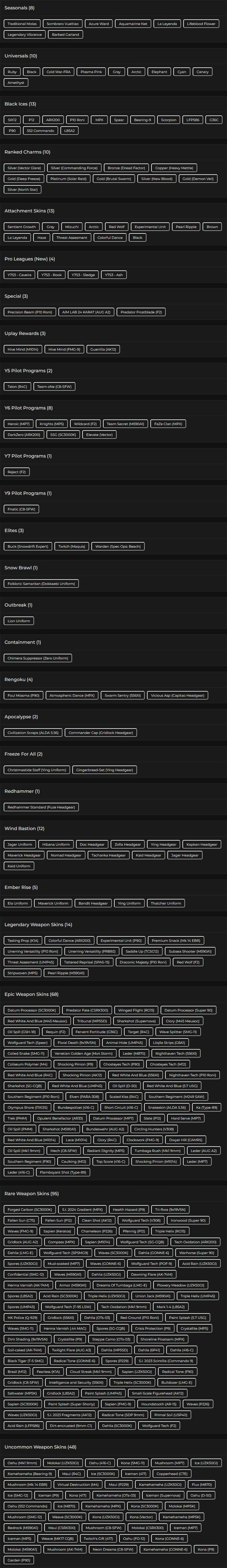 70 Operators 13x Black Ice 10 Universal Skins 16 Pro League Sets 3 Elite 8415 Renown Full Access โ