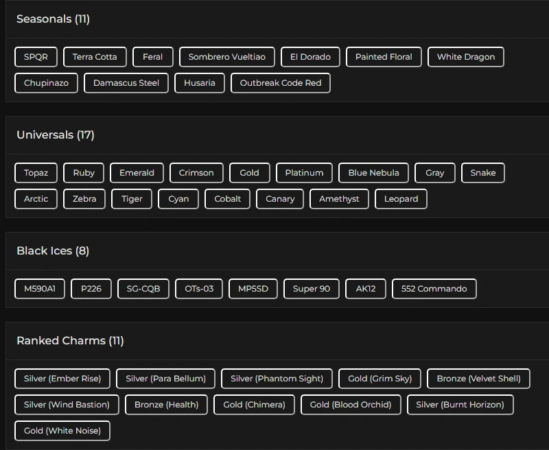 61 Operators 8x Black Ice 17 Universal Skins 8 Elite 10729 Renown Full Access β