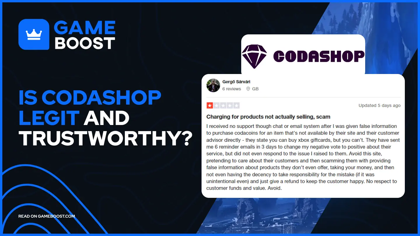 Deși Codashop funcționează ca o afacere legitimă, are partea sa de probleme, în special în ceea ce privește fiabilitatea serviciului, suportul pentru clienți și securitatea datelor. Pentru gamerii care doresc o experiență fără probleme și sigură, alegerea platformelor care pun accent pe satisfacția clienților, pe livrarea rapidă a comenzilor și pe măsuri solide de securitate este crucială. GameBoost s-a impus ca favorit printre gameri datorită suportului său excelent, livrării rapide și criptării avansate pentru protejarea datelor clienților.