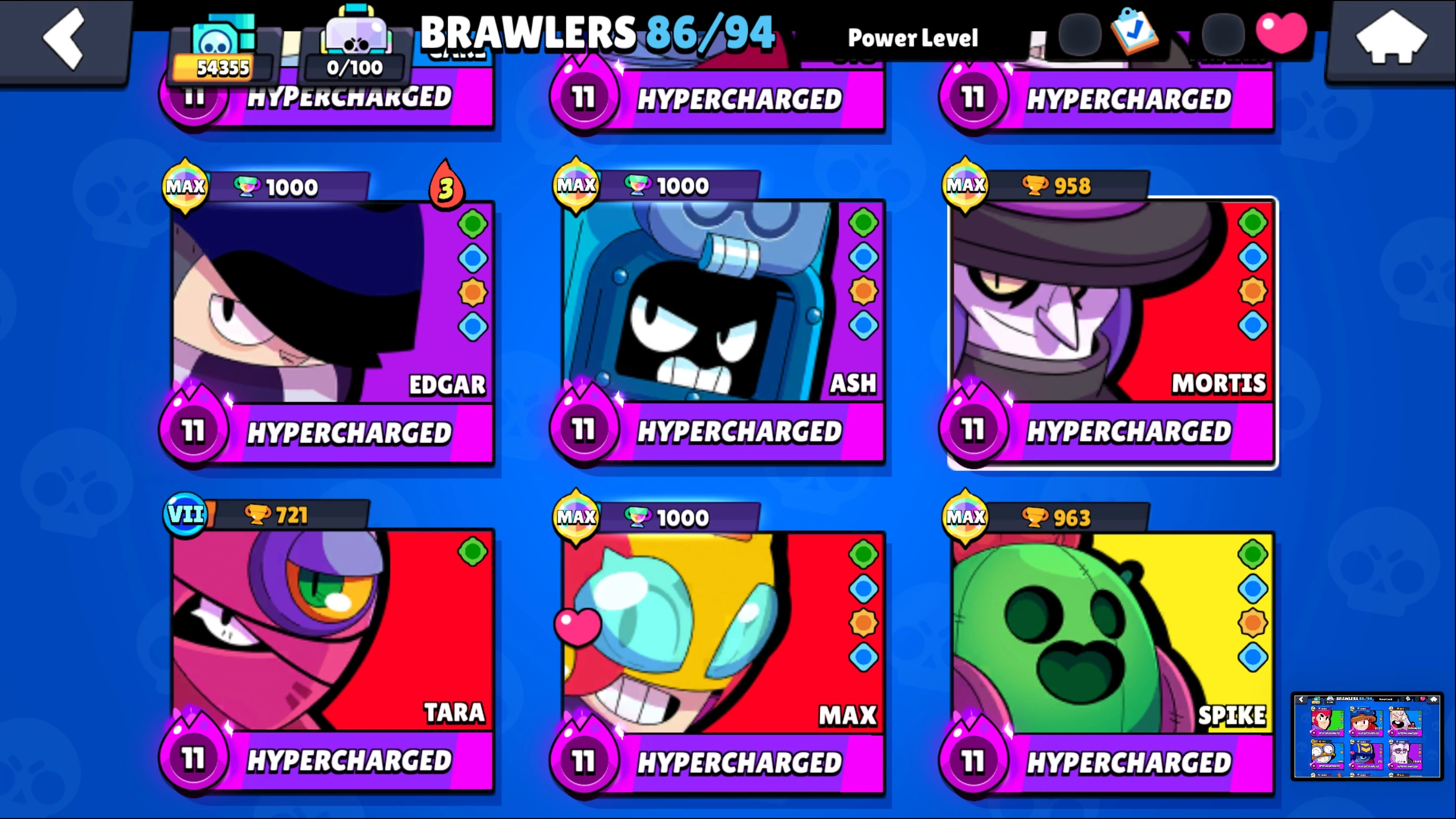 13 TITLES ⭐ 234 SKINS ⭐ 54.400 TROPHY ⭐ 86 BRAWLERS ⭐ 27 MAX ⭐ 15 HYPERCHARGED ⭐ MECHA MORTIS ⭐ LOADED RICO ⭐ CAPTAIN CARL ⭐ SKELETAL SURGE ⭐ FANG ⭐ SPIKE ⭐ LEGENDARY ⭐ LEON