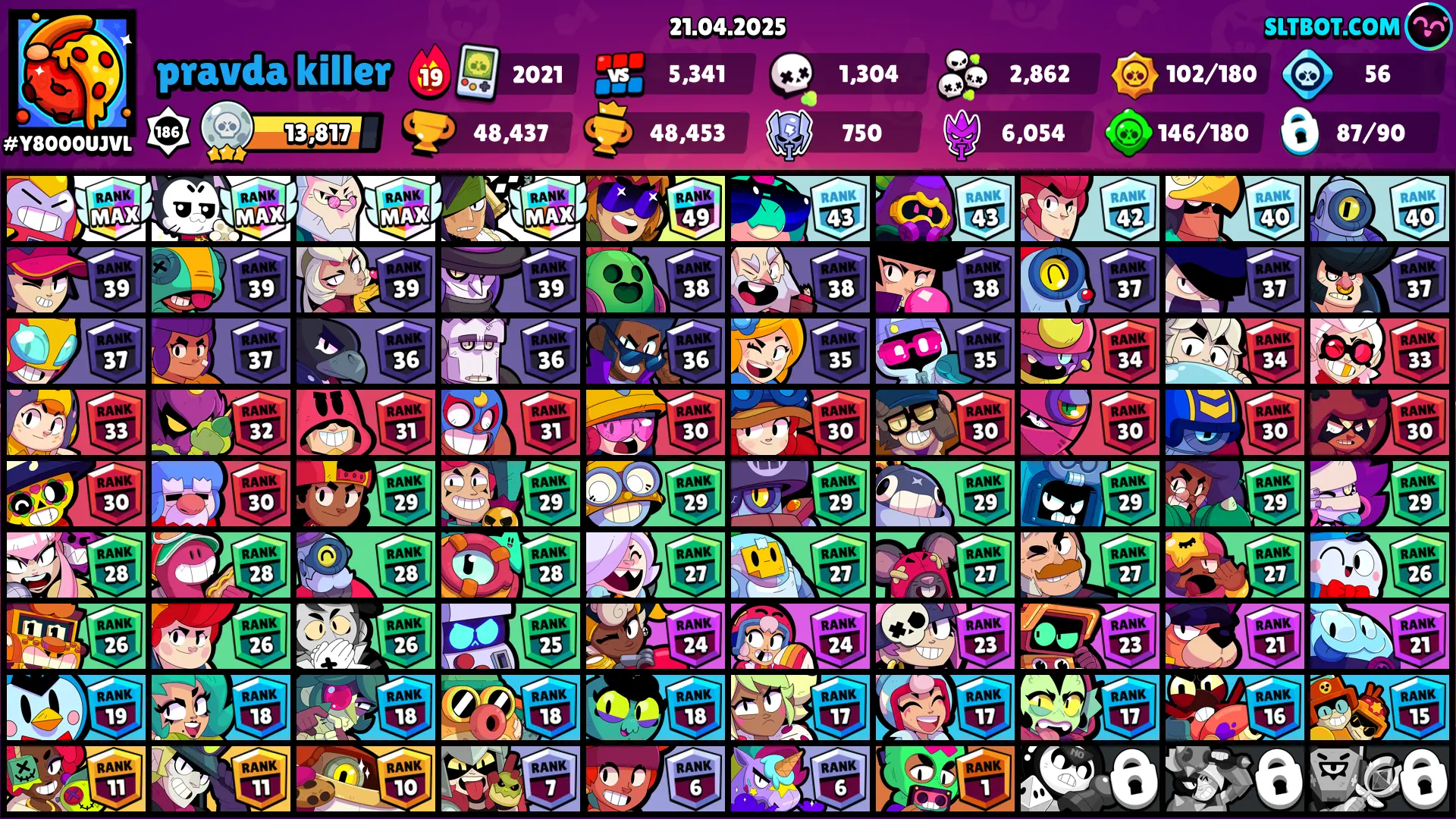 160 SKINS 🩵 48.437 TROPHIES 🏆 87 BRAWLERS 🧸 11 HYPERCHARGED 🩸 19 MAX BRAWLERS 🩷 PRINCESS SHELLY🩵 NINJA ASH🩵 GUNSLINGER COLT🩵 BELLE GOLDHAND 🩵 CLASSIC DYNAMIKE🩵 FURIOUS FANG 🎀
