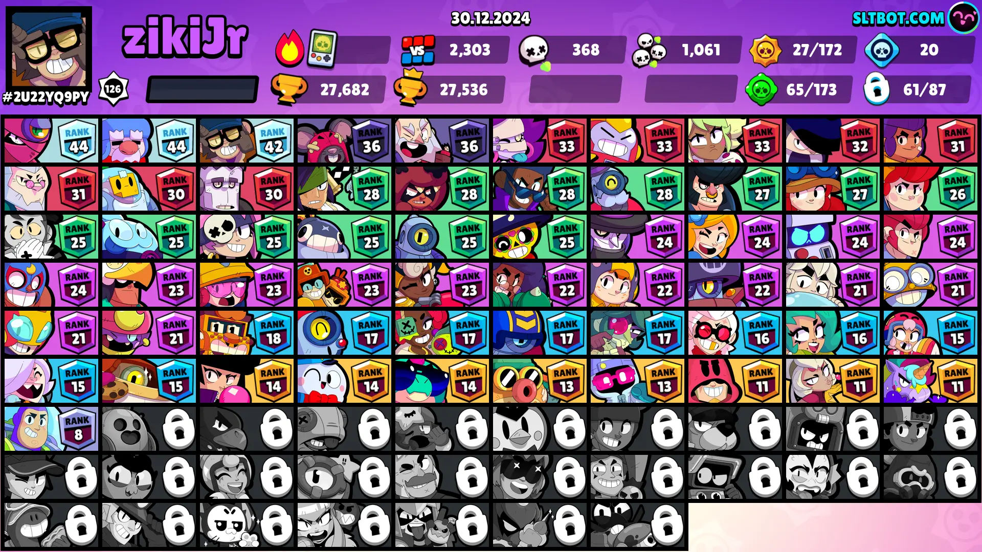58 SKINS 🩵 27.524 TROPHIES 🏆 61 BRAWLERS 🧸 HYPERCHARGED 🩸 MAX BRAWLERS 🩷 🎀