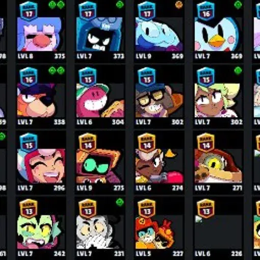 👑 72 Brawlers 👑 29.942 Trophies 👑 63 Skins 👑 5 Legends 👑 22 Mythics 👑 26 Epics 👑 11897 Gold 👑 5 Gems 👑 78 Blings 👑