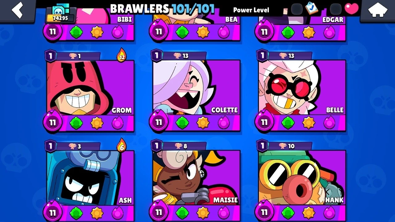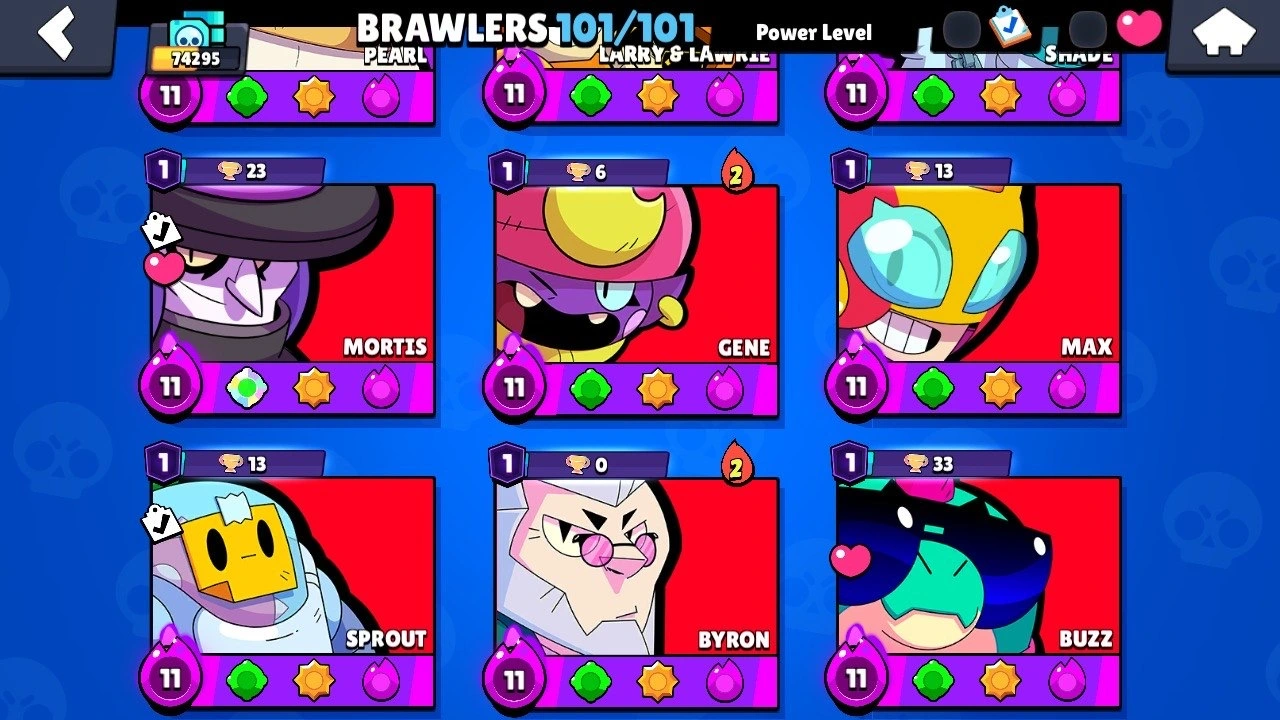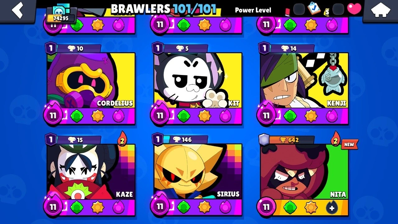 74 295 Trophies 🏆 67 Maxed Brawlers ( 53 Hypercharged 😈} | 61x Prestige 🔥357+ skins
