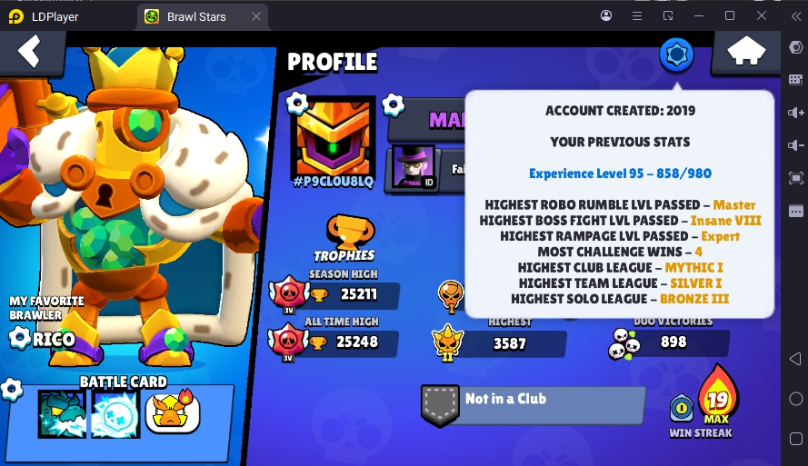 75 SKINS 🩵 25.211 TROPHIES 🏆 70 BRAWLERS 🧸 0 HYPERCHARGED 🍒 4 MAX BRAWLERS ⭐ EL REY PRIMO 🩵 HARPY MELODIE 🩵 PUTRID PAM 🩵 SCARLET PALADIN SURGE 🩵 TRASH PANDA PENNY