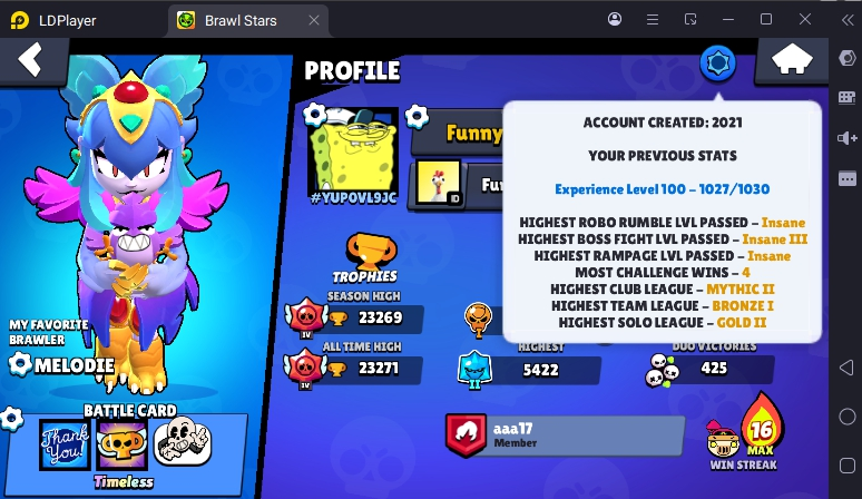 81 SKINS 🩵 23.269 TROPHIES 🏆 75 BRAWLERS 🧸 6 HYPERCHARGED 🍒 9 MAX BRAWLERS ⭐ DRAGOON BELLE 🩵 DYNASTY MIKE 🩵 ELDR FENRIR BUZZ 🩵 FINAL BOSS RICO 🩵 GUARD RICO