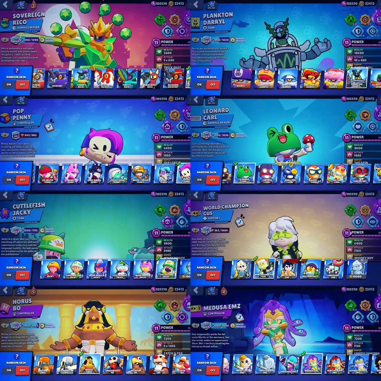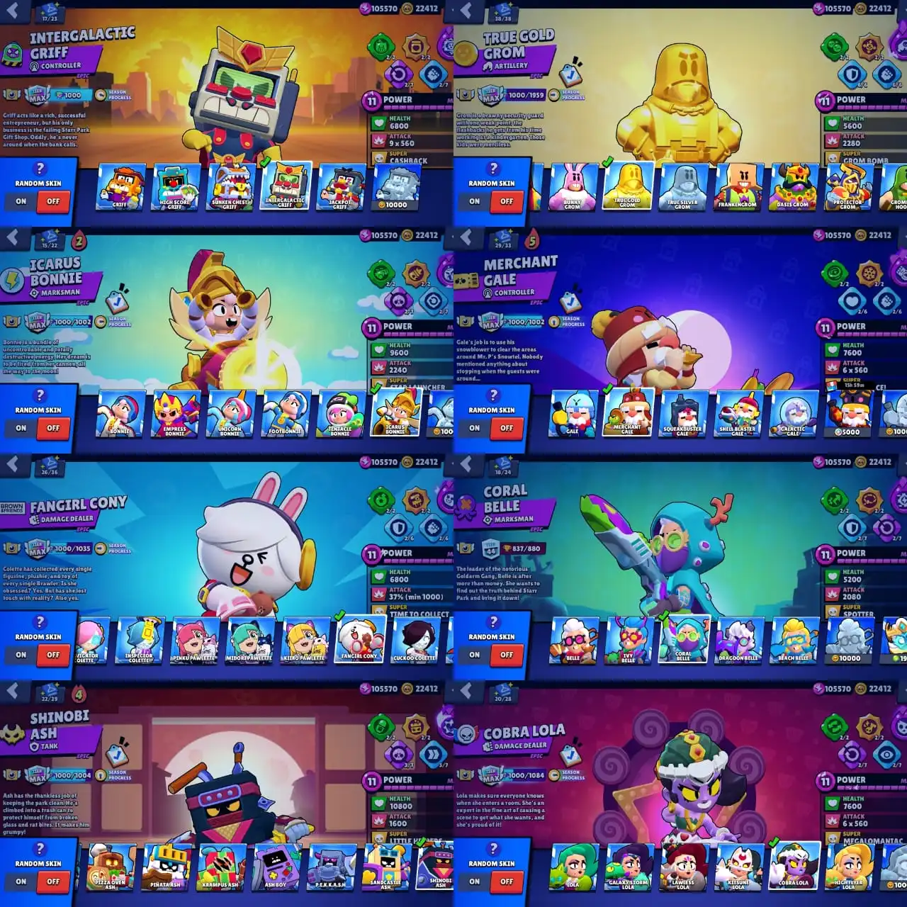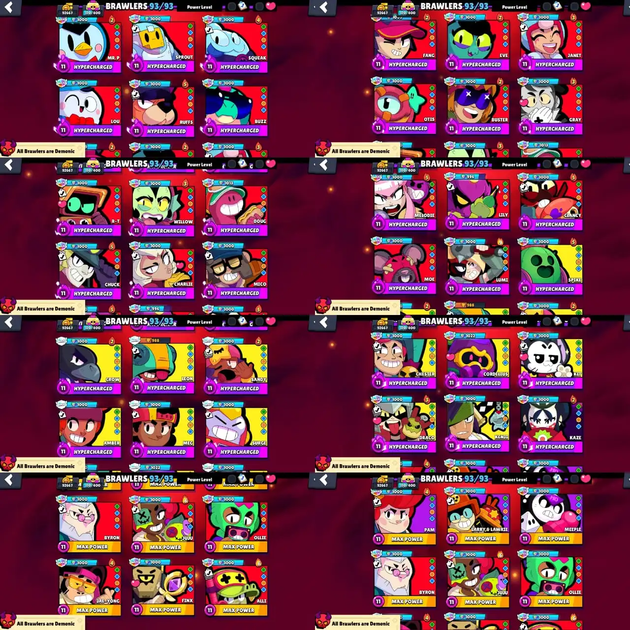 ✨ 94k Trophy ✨ Alien Fame 1 ✨ Only 10k Credits to Alien 2 ✨ 4x Prestige ✨ 1x Old Masters ✨ Fully Maxed ✨ All Hypercharges ✨ 90x Max tiers ✨ 540 Skins ✨ Merchant Gale ✨ Virus 8-Bit ✨ Lion Dance Brock ✨ WareWolf Leon ✨ Super Ranger Brock ✨