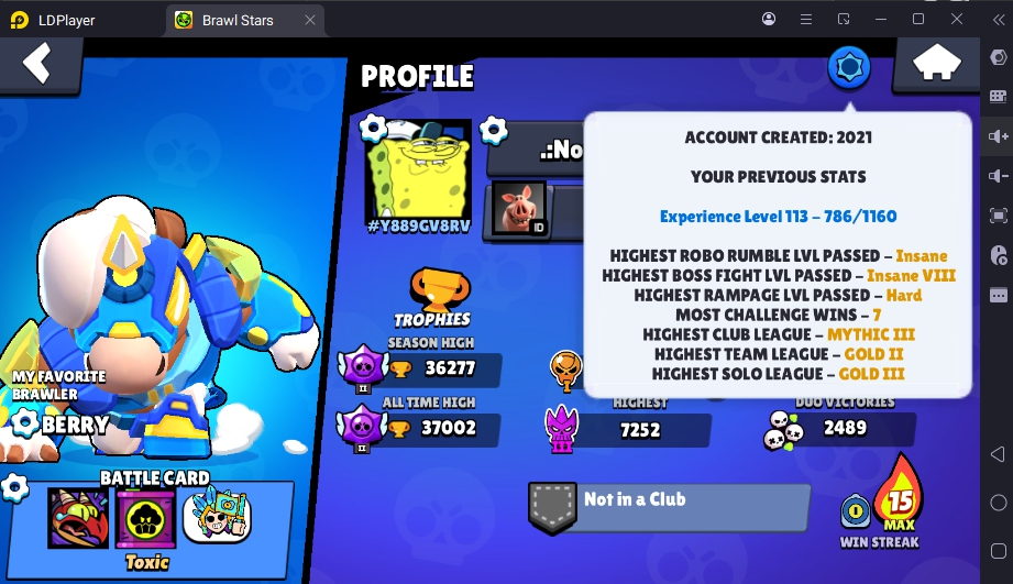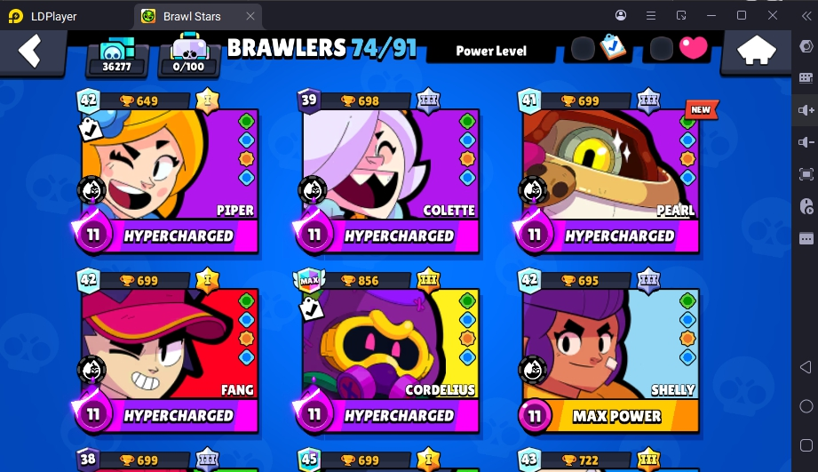 99 SKINS 🩵 36.277 TROPHIES 🏆 74 BRAWLERS 🧸 5 HYPERCHARGED 🍒 10 MAX BRAWLERS ⭐ COCO ROSA 🩵 DYNASTY MIKE 🩵 FLAG BEARER PIPER 🩵 STARRHORSE BERRY 🩵 TANUKI JESSIE