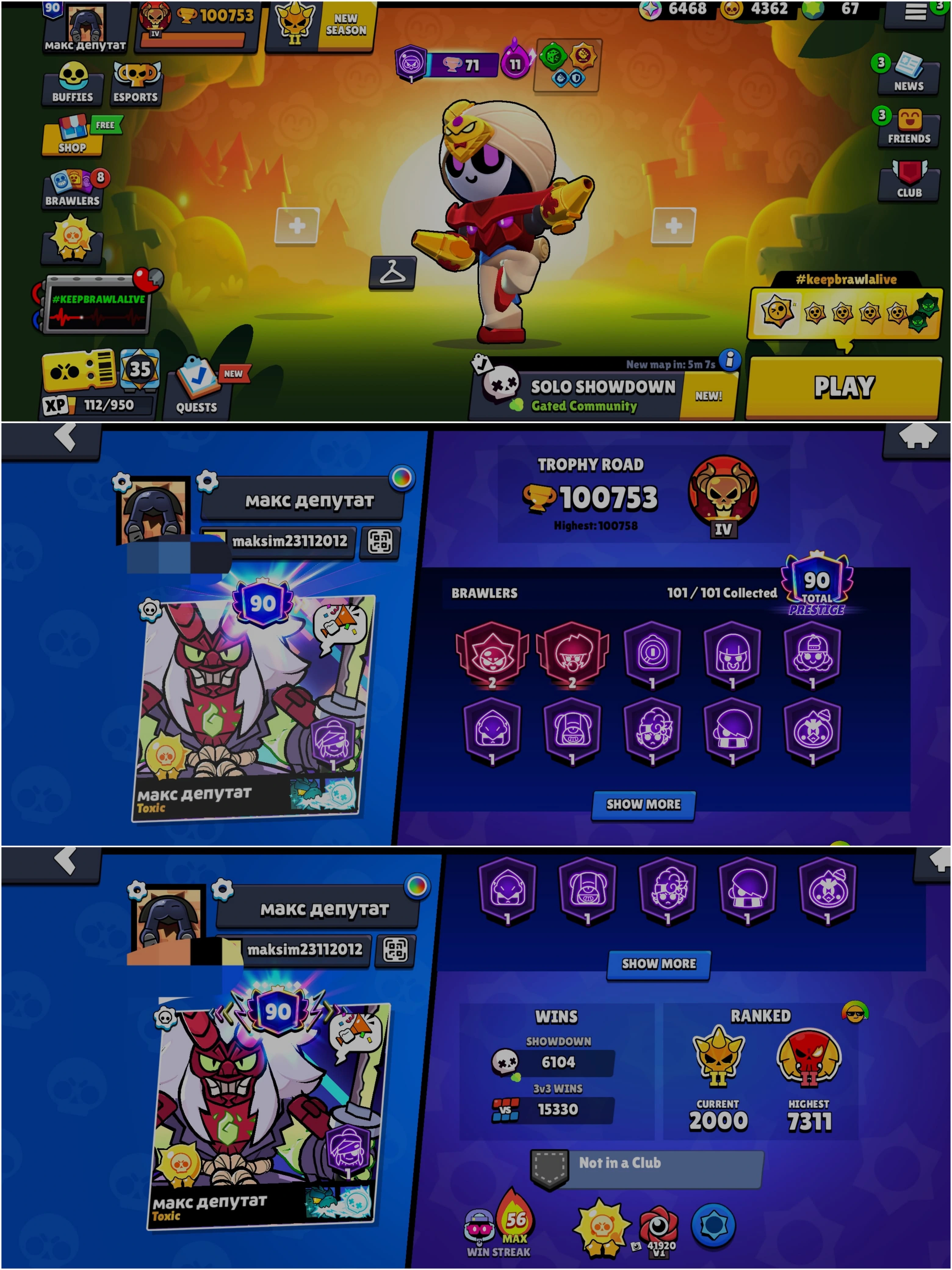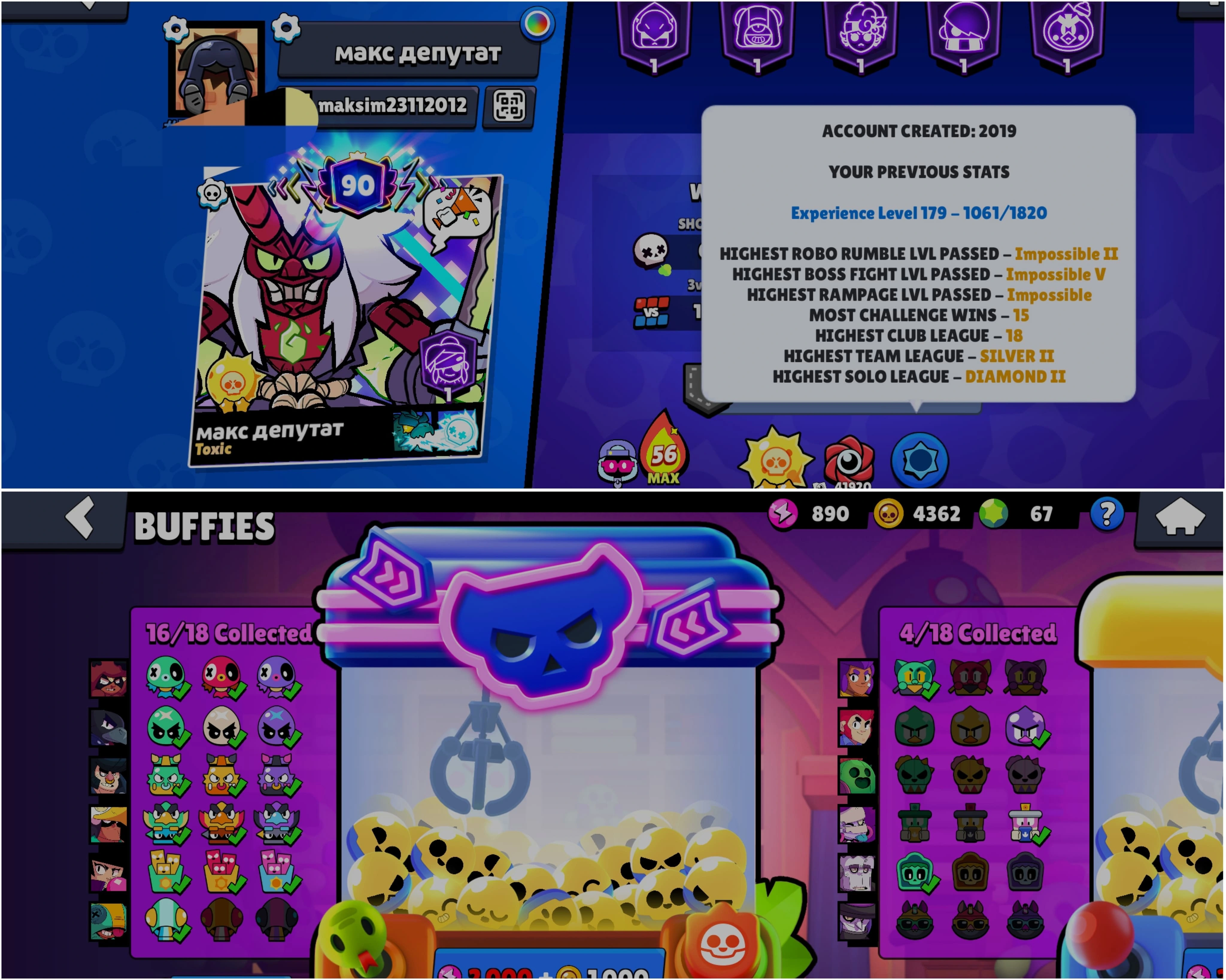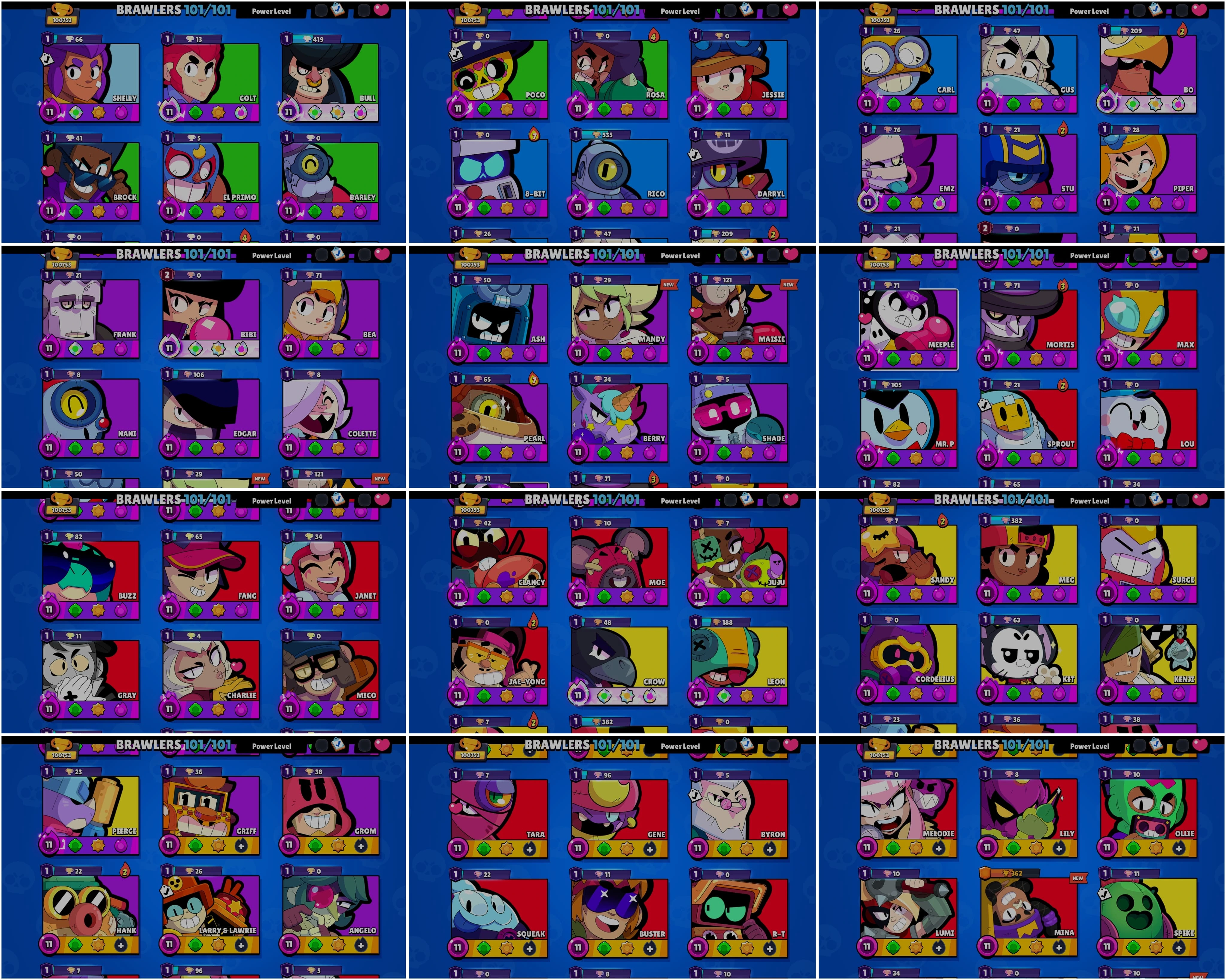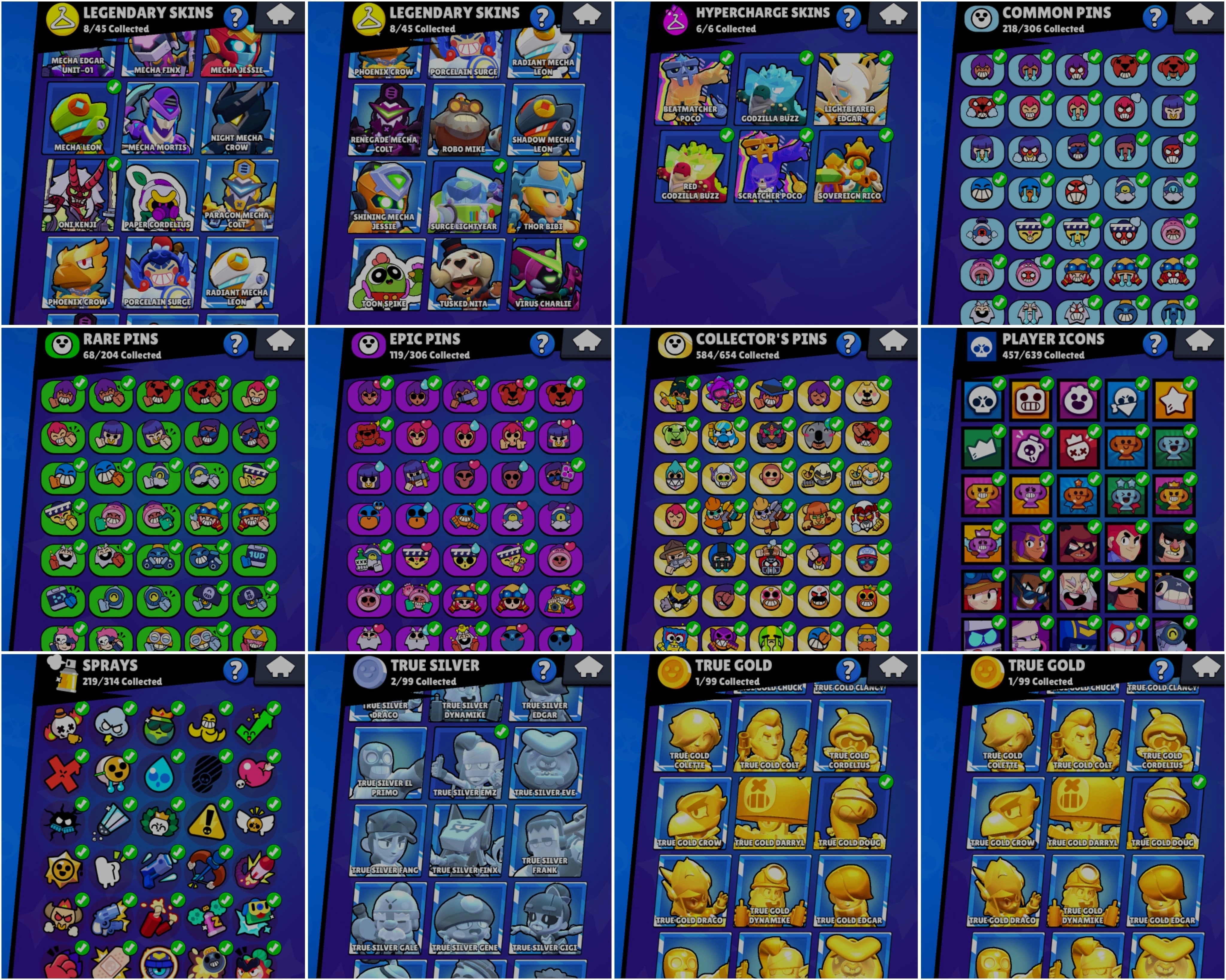 BEST BS 100.7k TROPHY, 101/101 BRAWLERS UNLOCKED,55 HYPER CHARGED, 21 MAXED BRAWLERS, 343 OP SKINS [11 MYTHIC + 8 LEGENDARY + 6 HYPERCHARGED] , 989 PINS, 457 PLAYER ICON AND 219 SPRAYS | HV372