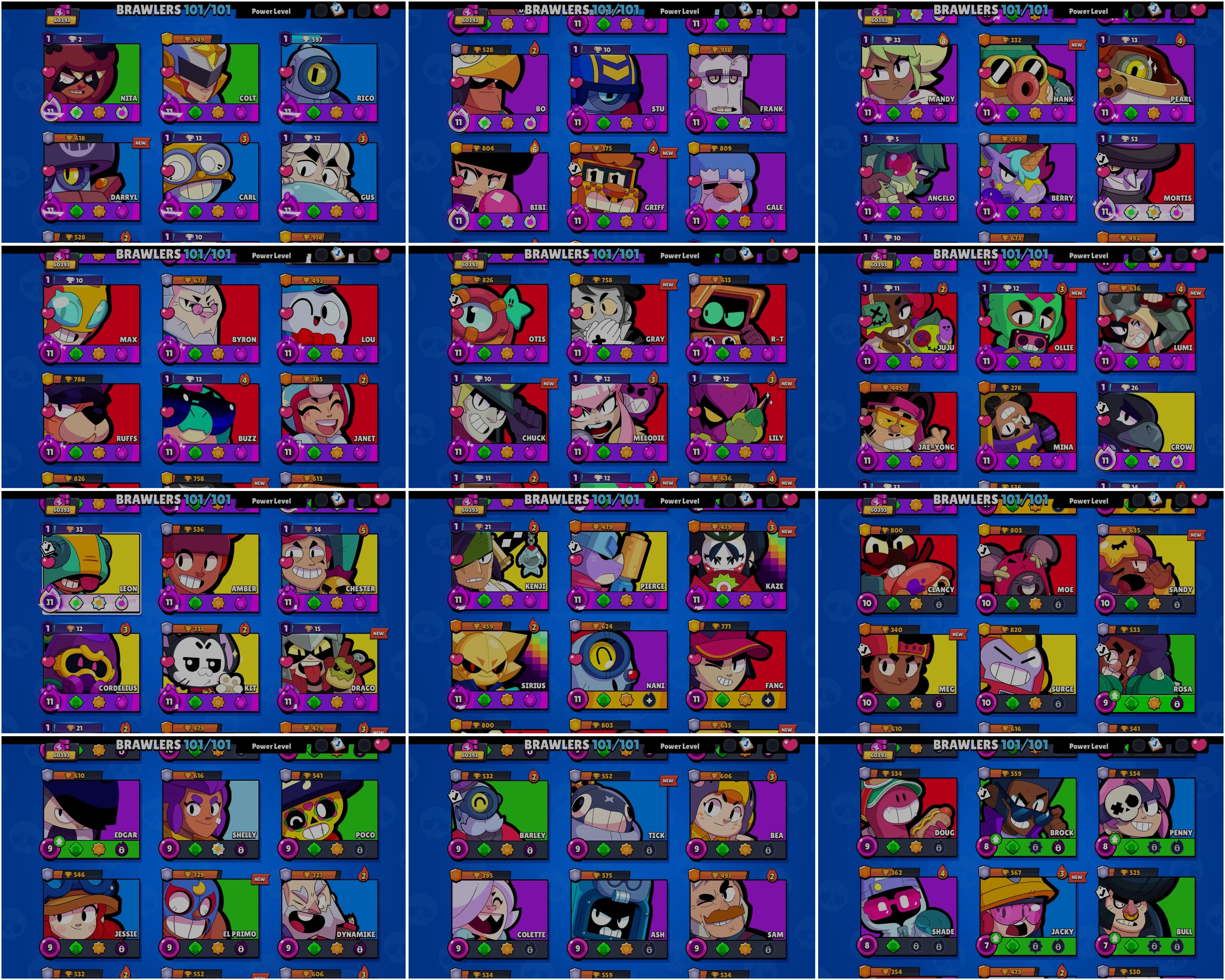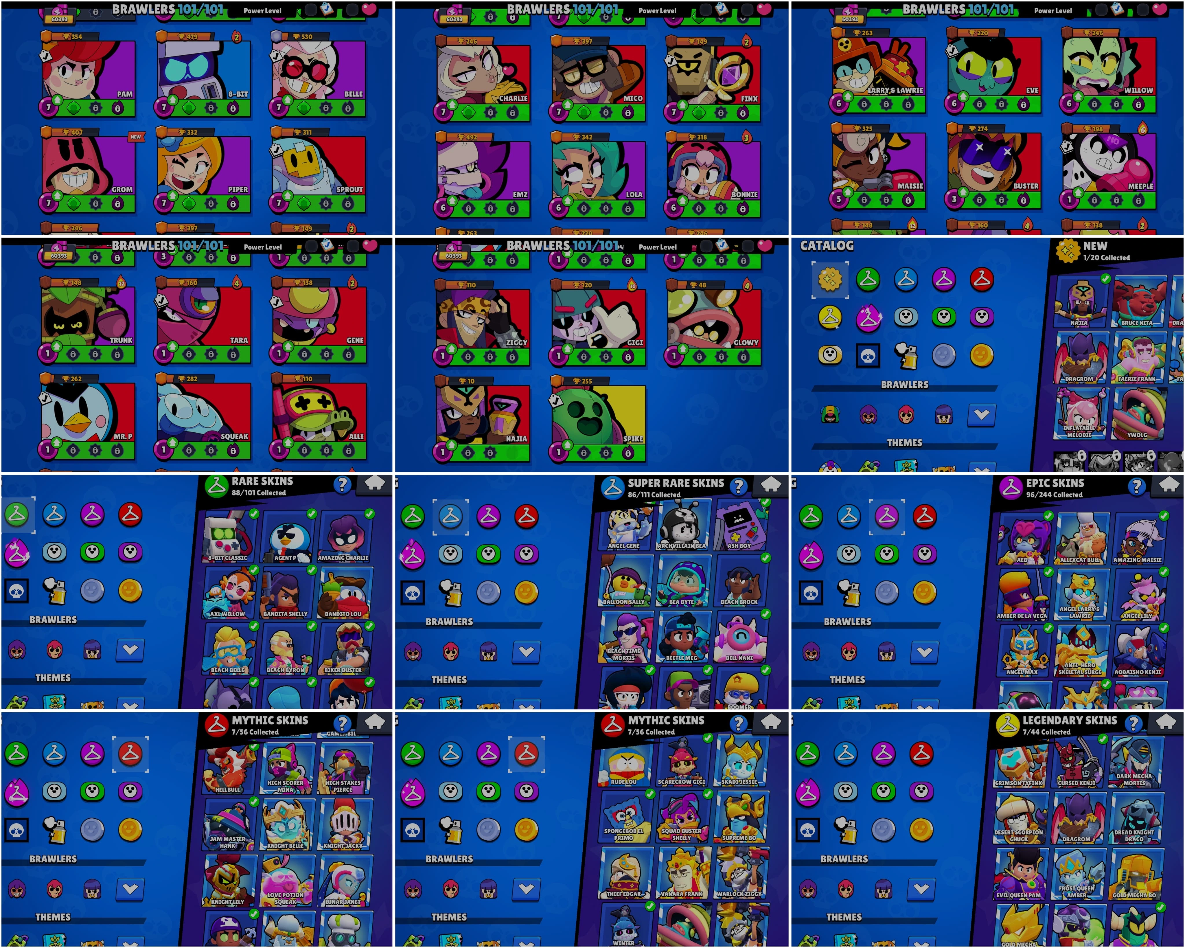 BEST BS 60.3k TROPHY, 101/101 BRAWLERS UNLOCKED,46 HYPER CHARGED, 2 MAXED BRAWLERS, 289 OP SKINS [7 MYTHIC + 7 LEGENDARY + 5 HYPERCHARGED] , 826 PINS, 405 PLAYER ICON AND 209 SPRAYS | H379