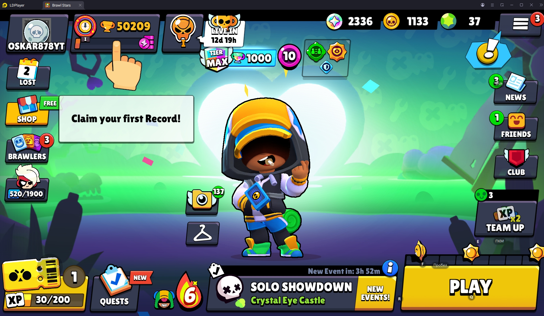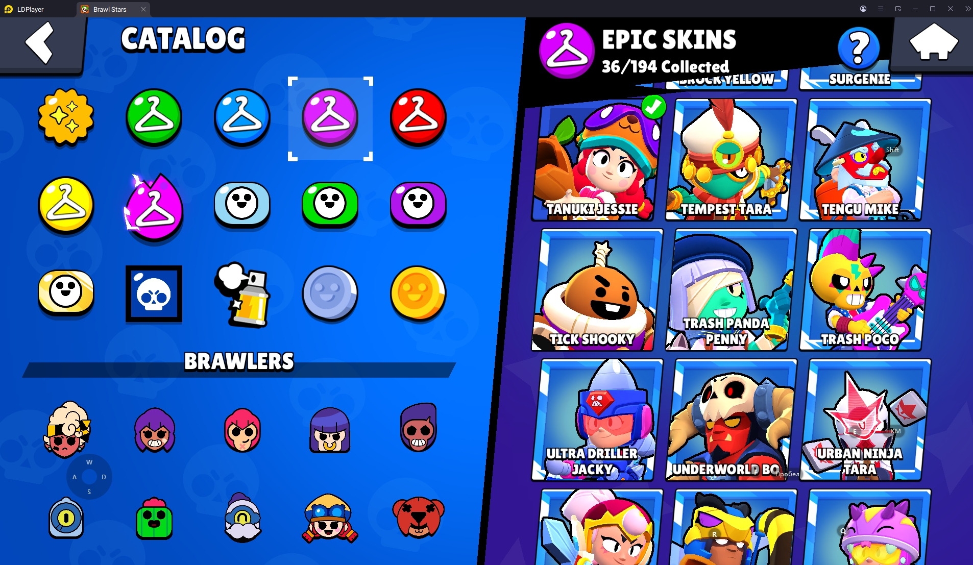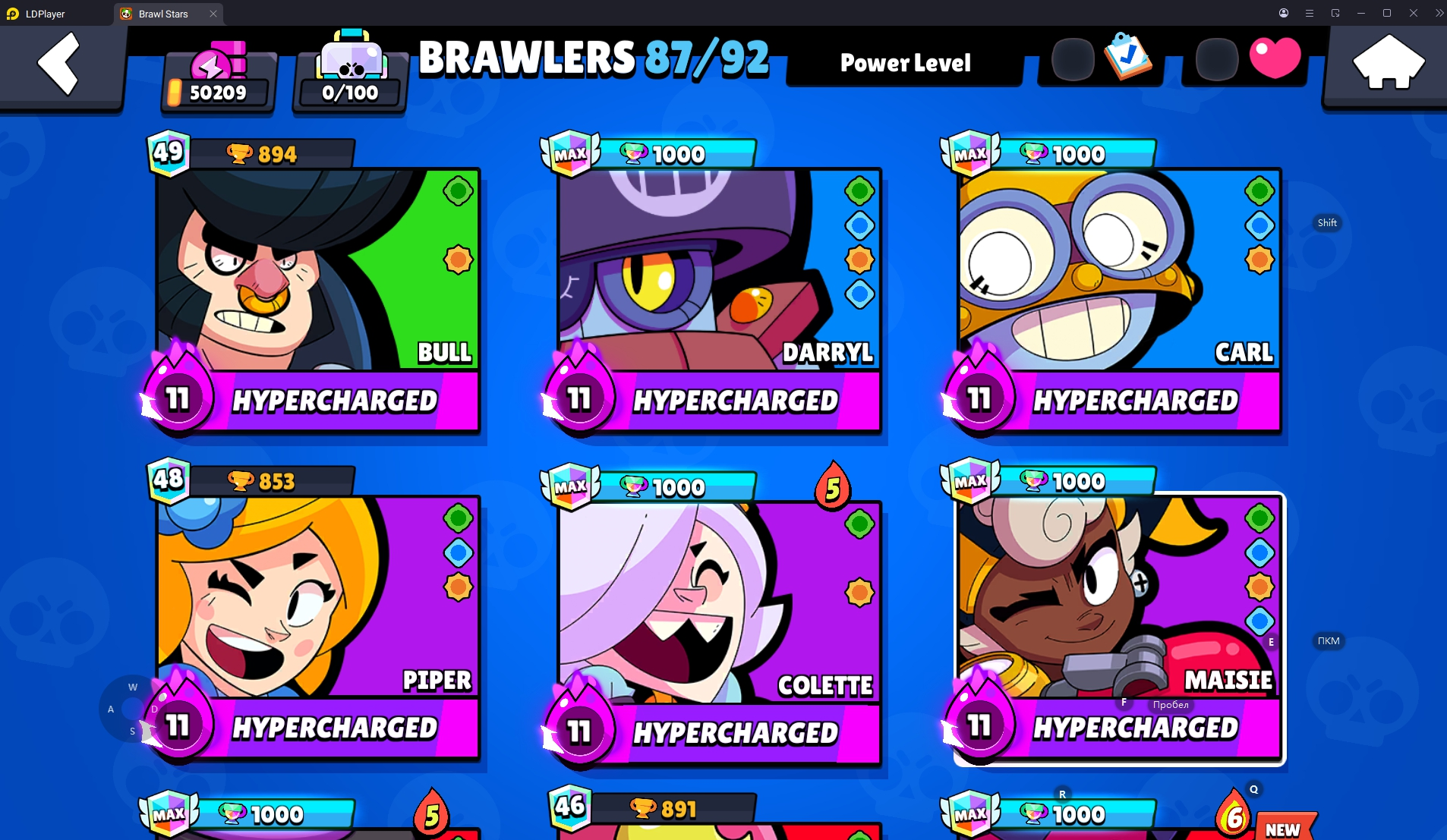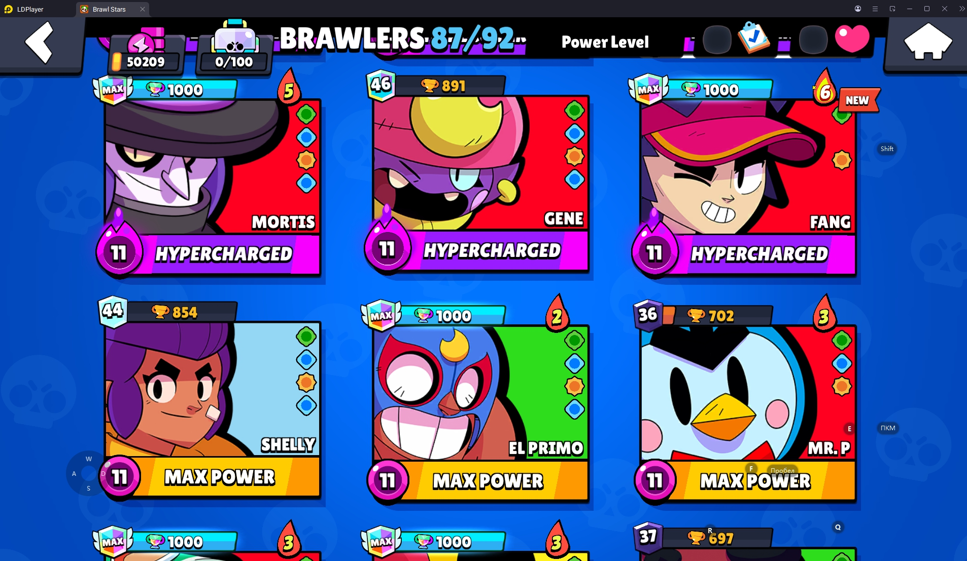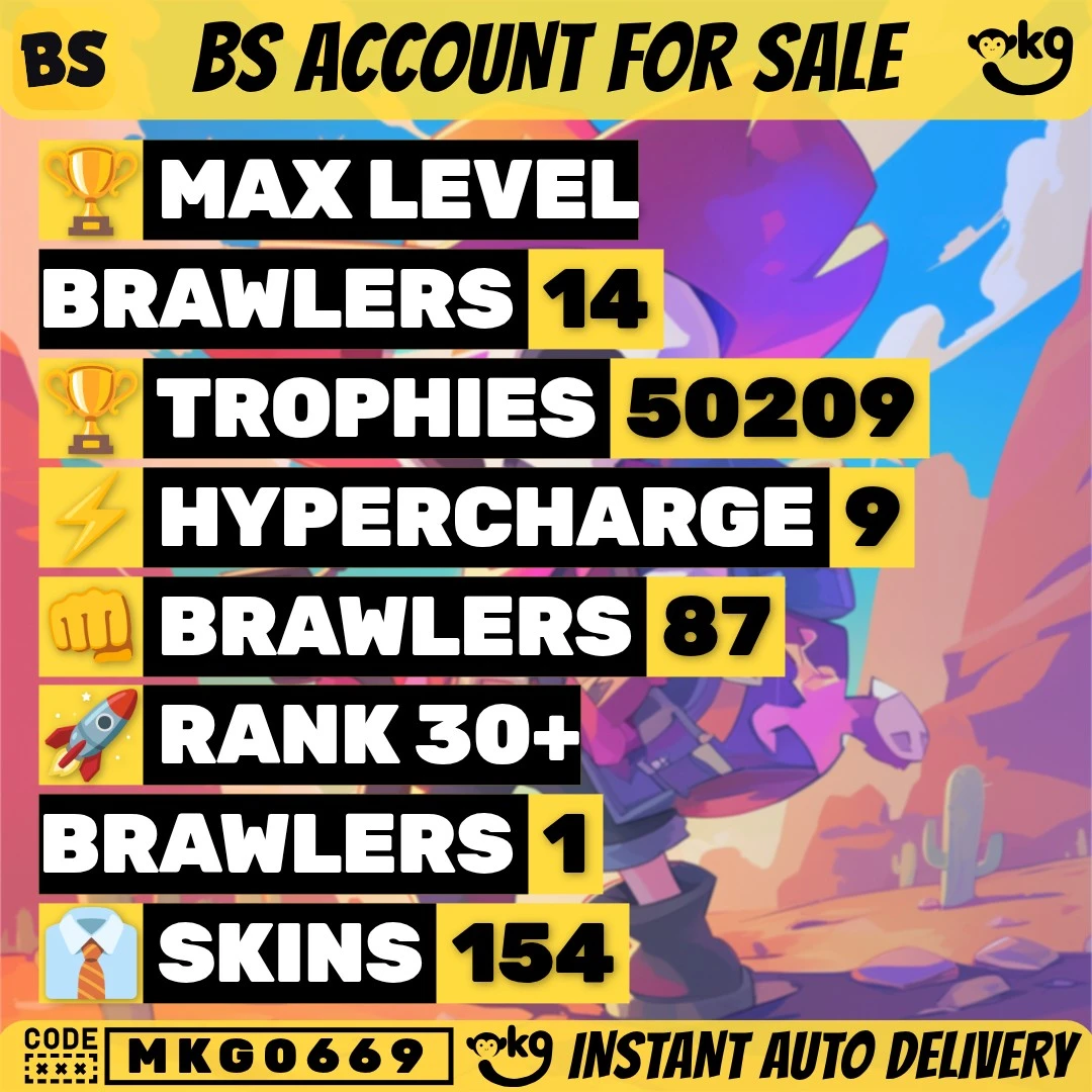 154 SKINS 💯 WORLD FINALS LEON 🧡 50.209 TROPHIES 🏆 87 BRAWLERS 🐼 9 HYPERCHARGED 🩸 14 MAX BRAWLERS !MKG0669