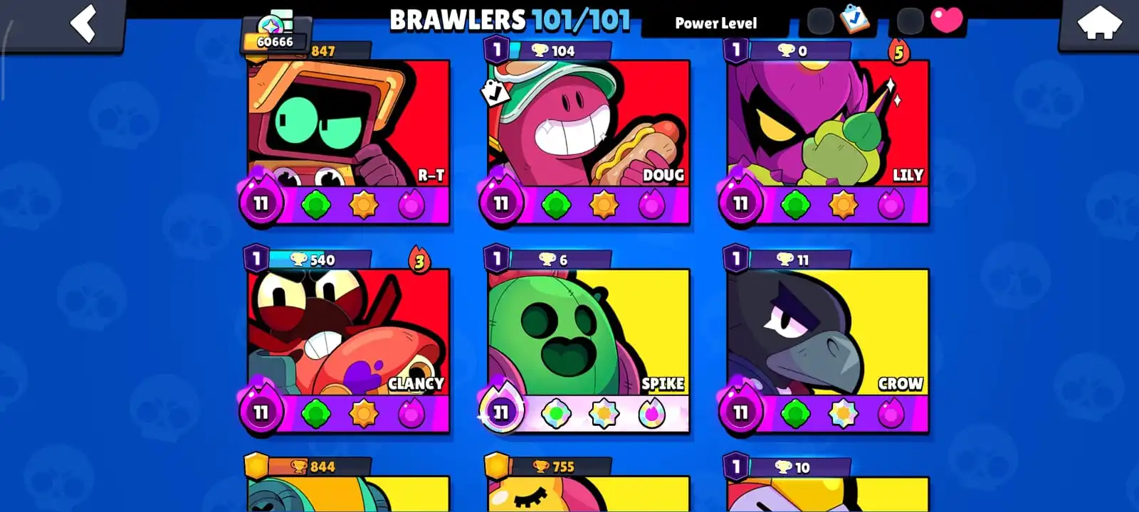 cheapest🔥combo cr lv 66🔥46 max brawl🔥44 hypercharged🔥386 skins🔥trophy 60666🔥full access account🔥