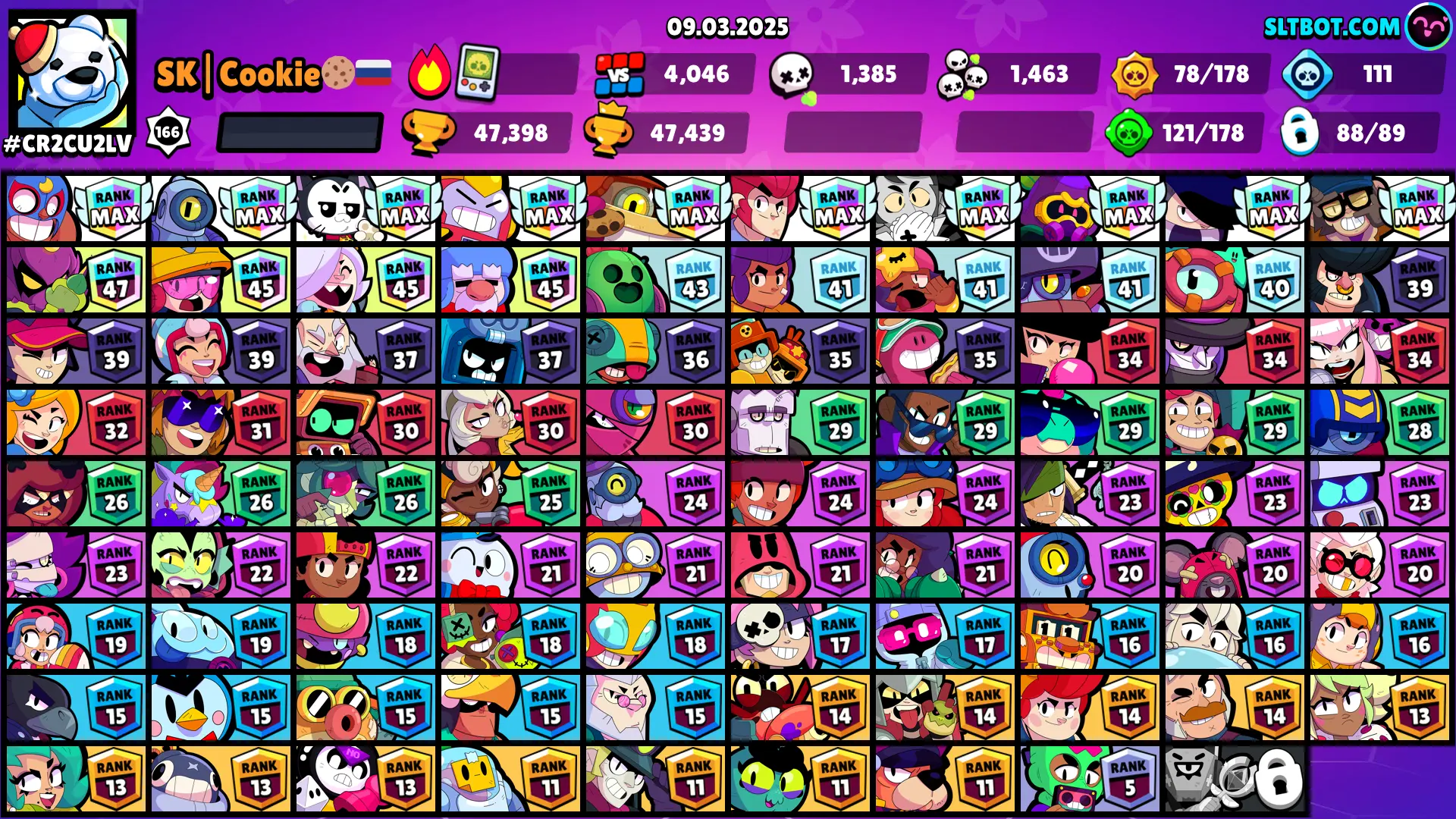 235 SKINS 🩵 47.398 TROPHIES 🏆 88 BRAWLERS 🧸 19 HYPERCHARGED 🩸 28 MAX BRAWLERS 🩷 EL TIGRO 🩵 MERCHANT GALE 🩵 SANTA STU 🩵 VALKYRIE JANET 🩵 REINBEAR NITA 🩵 ROSIE CHARLIE 🎀