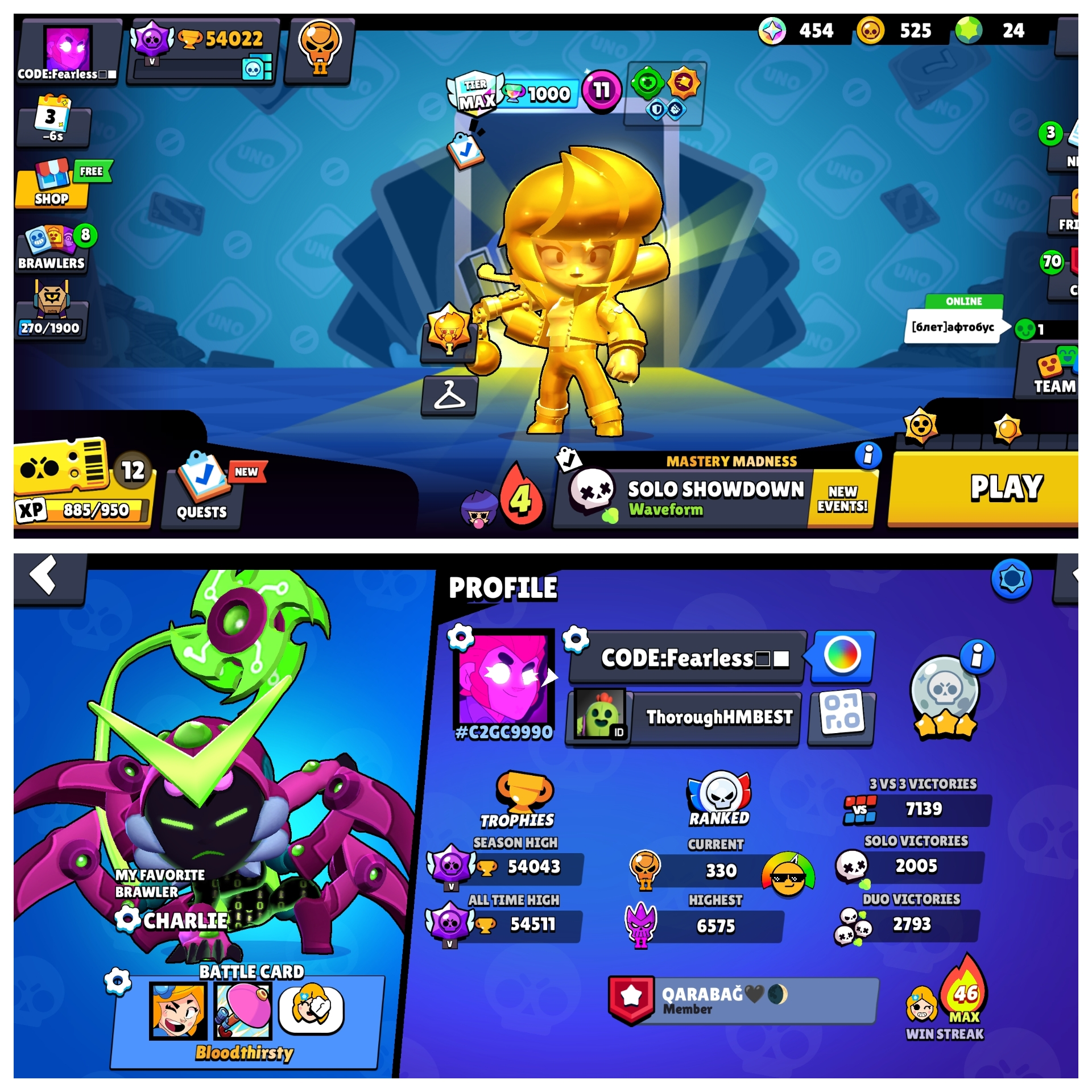 Premium Accoun--54043 Trophy--20 Hypercharge--15 BRAWLER MAX--88-90 Brawler--160 Rare Skin--Win Streak 46