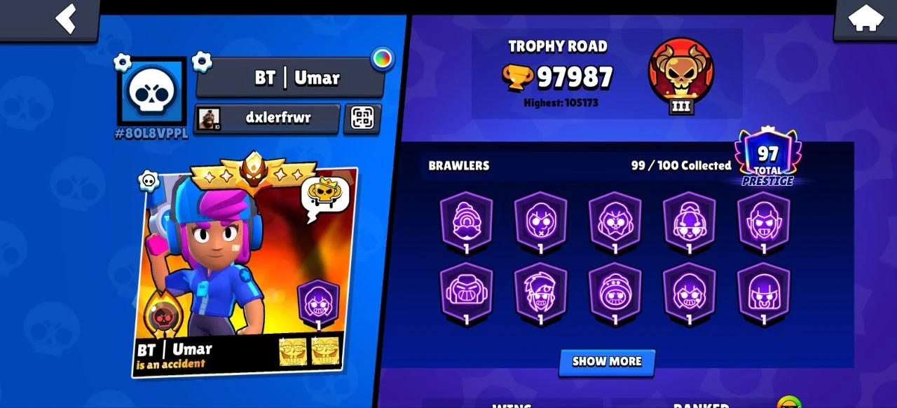 💎 (RAREST) 105000 Trophies 🌸 97 HYPERCHARGED 👑 110+ TITLES 🚀 2018 CREATION YEAR 💪 2x OLD PRESTIGE 🏅 MASTERS RANKED 🎯 METEORIC FAME 2 🫶 475 OG SKINS 🍓 WEREWOLF LEON ☃️ OG STAR SHELLY 🎊 RED NOSE NITA 🔥 LIL HELPER PENNY 😈 INSTANT DELIVERY 🚚
