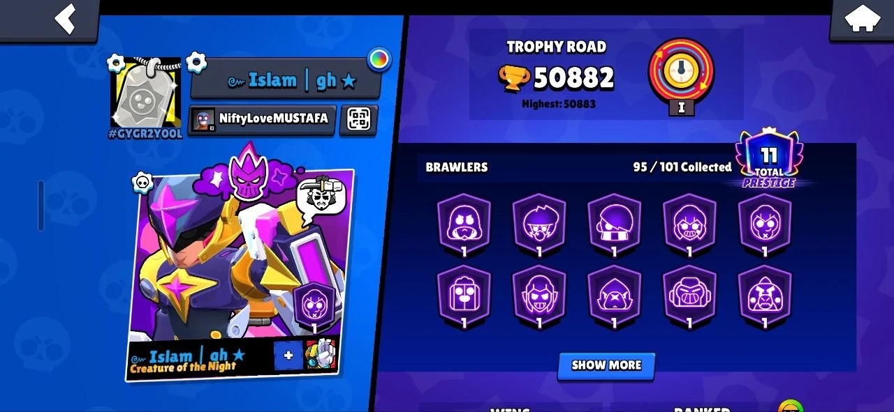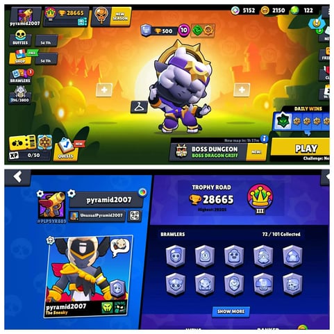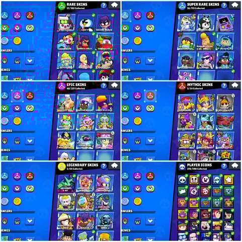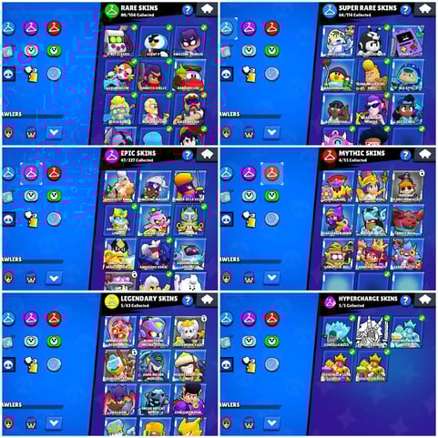TROPHY 50K-BRAWLER 95-MAX BRAWLER 34-HYPERCHARGE 27-ICON 360-SKINS COLLECTION 235-OLD COLLECTION AVAILABLE-BEST-DEAL