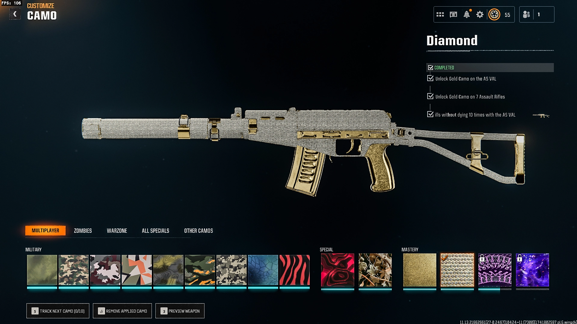 🎯 20 Diamond Camos 🔥 20 Gold Camo 🔥260 Camos 🔥 17 Operators 🔥 50 Wins 🔥 Ranked Ready Prestige-Ready 🔒 Full Access 🔗 Linkable to: Steam, Battle.net, PSN, Xbox 🎮 BO6 #2AC15B