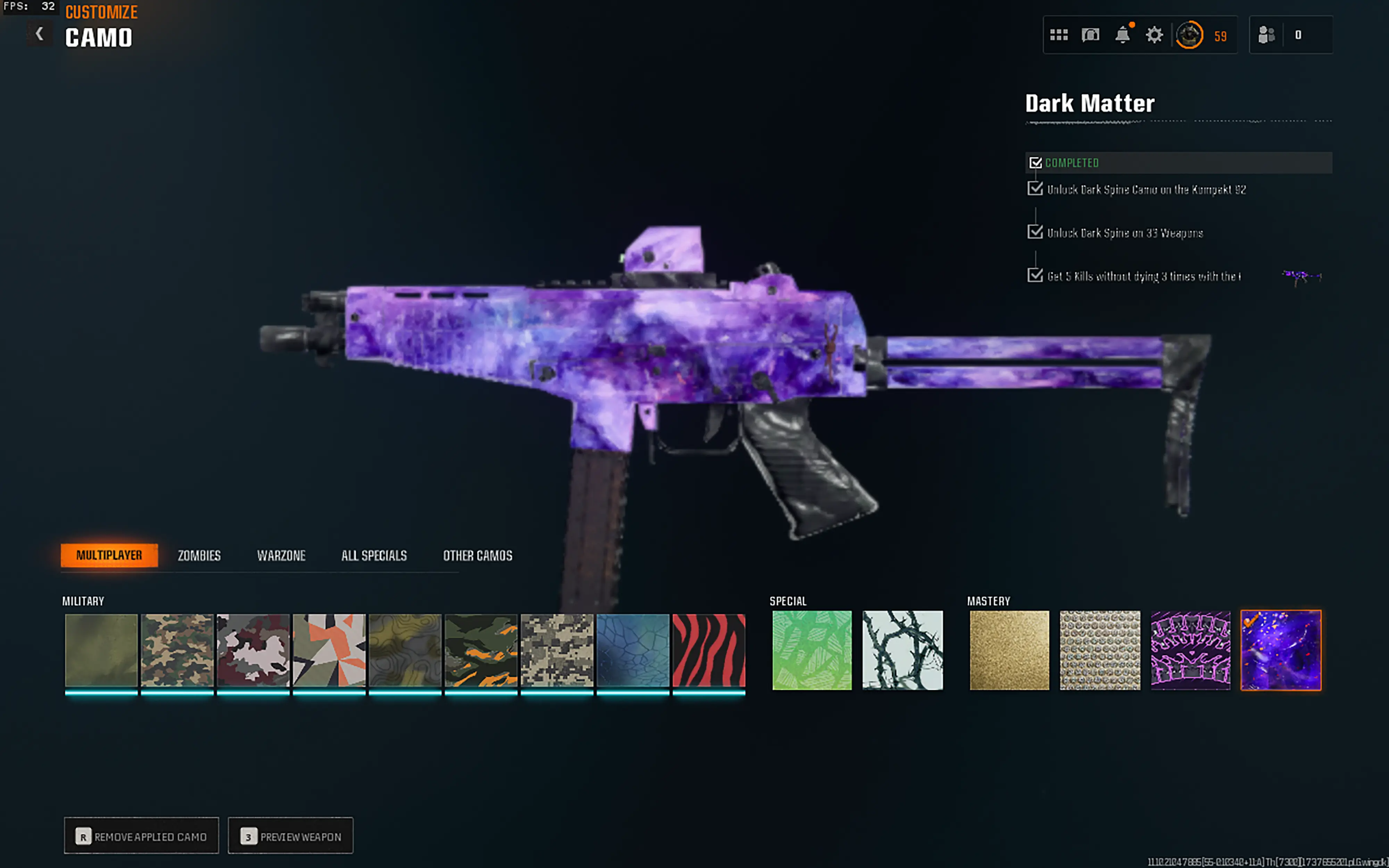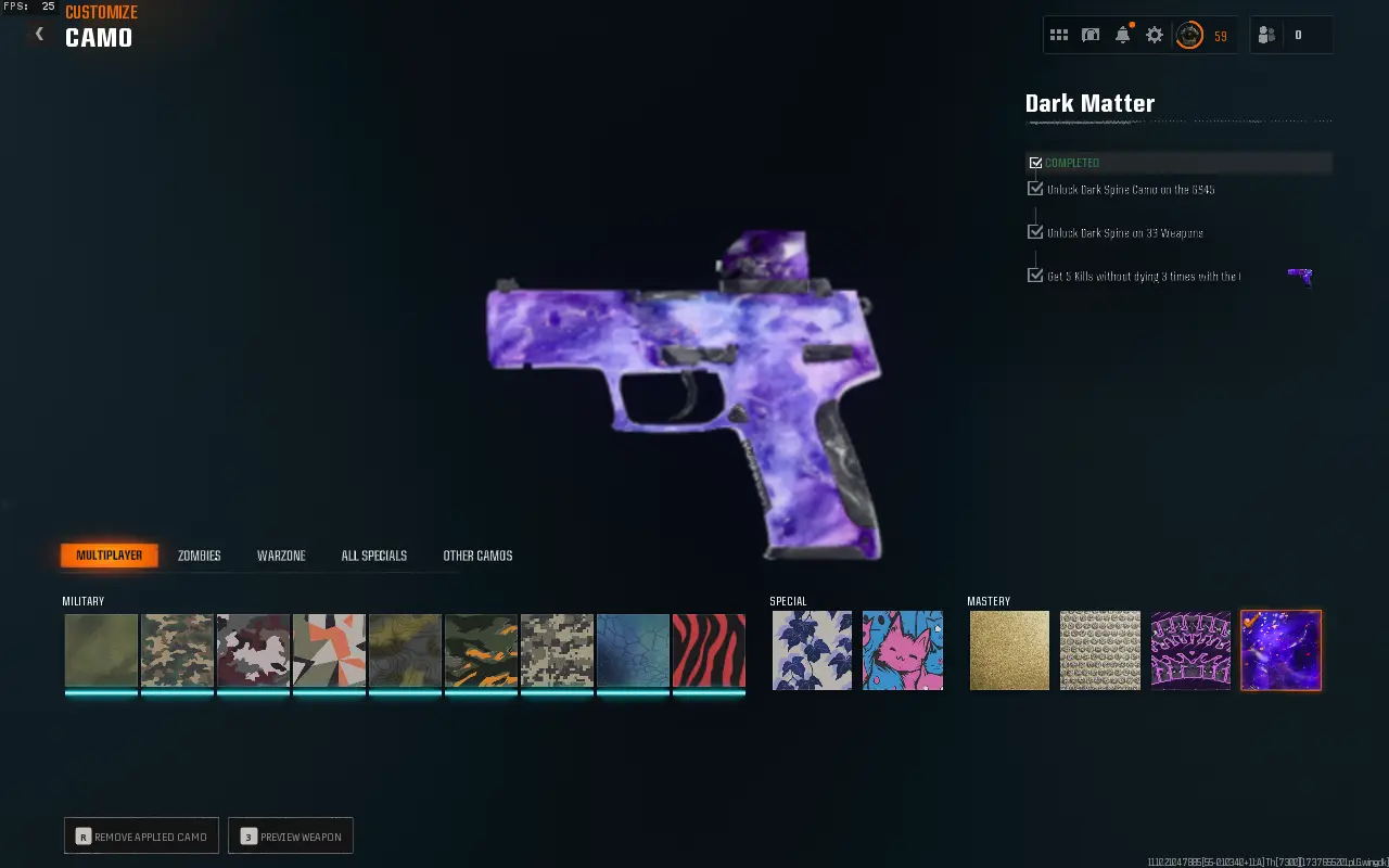 500 Camos Prestige Master 🥇 33 Dark Matter 🌌 Ranked Ready ⚡ 50 Wins 🐉 17 Operators 🎭 🔗 Linkable: Steam / Battle.net / PSN / Xbox 🎮 BO6 & WZ4 #k1v9rdc