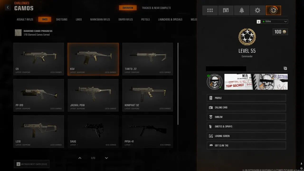 💎 ⦿ 7 Diamond SMGs ⦿ Ready Ranked ⦿ Game Pass Activated ⦿ Perfect for Dark Matter Grind ⦿ BO6 / Warzone ⦿ Level 55 ⦿ 7 Gold Camos ⦿ 91 Total Camos ⦿ Ready To Enter Prestige ⦿ 16 Operators ⦿ Linkable To Any Platform 💎