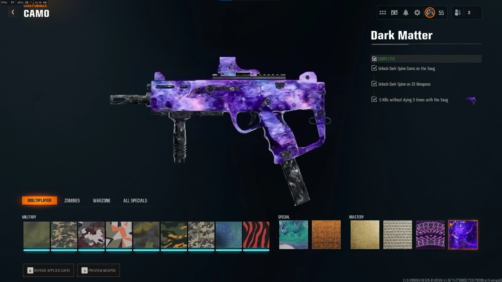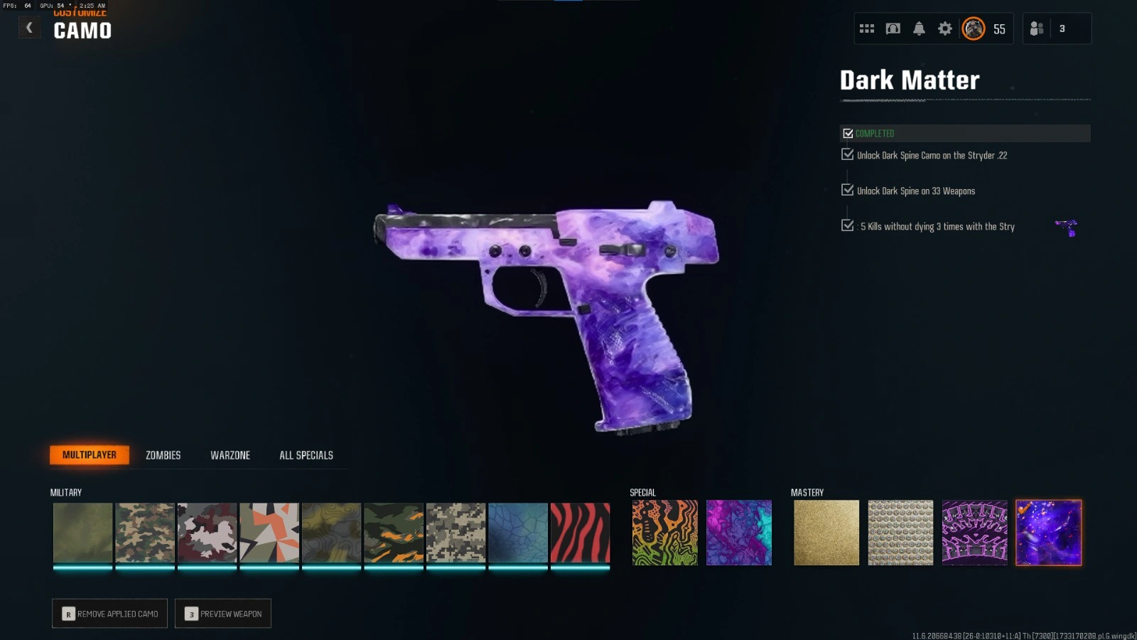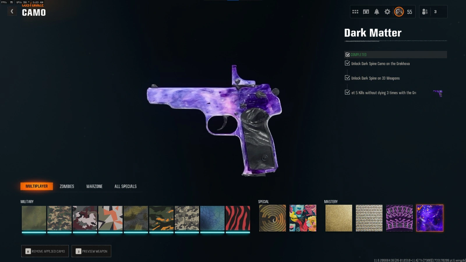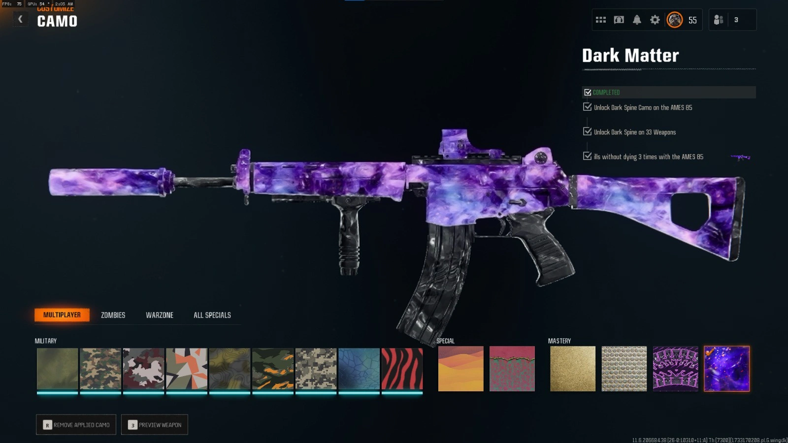 BO6 33 guns Dark Matter 🦮 Level 55 Prestige 1 🪞 Diamond 🧃 Dark Spine 🐻 Gold 🎍 All-platform support 🥁 Instant Delivery 🥬 HandLevelled
