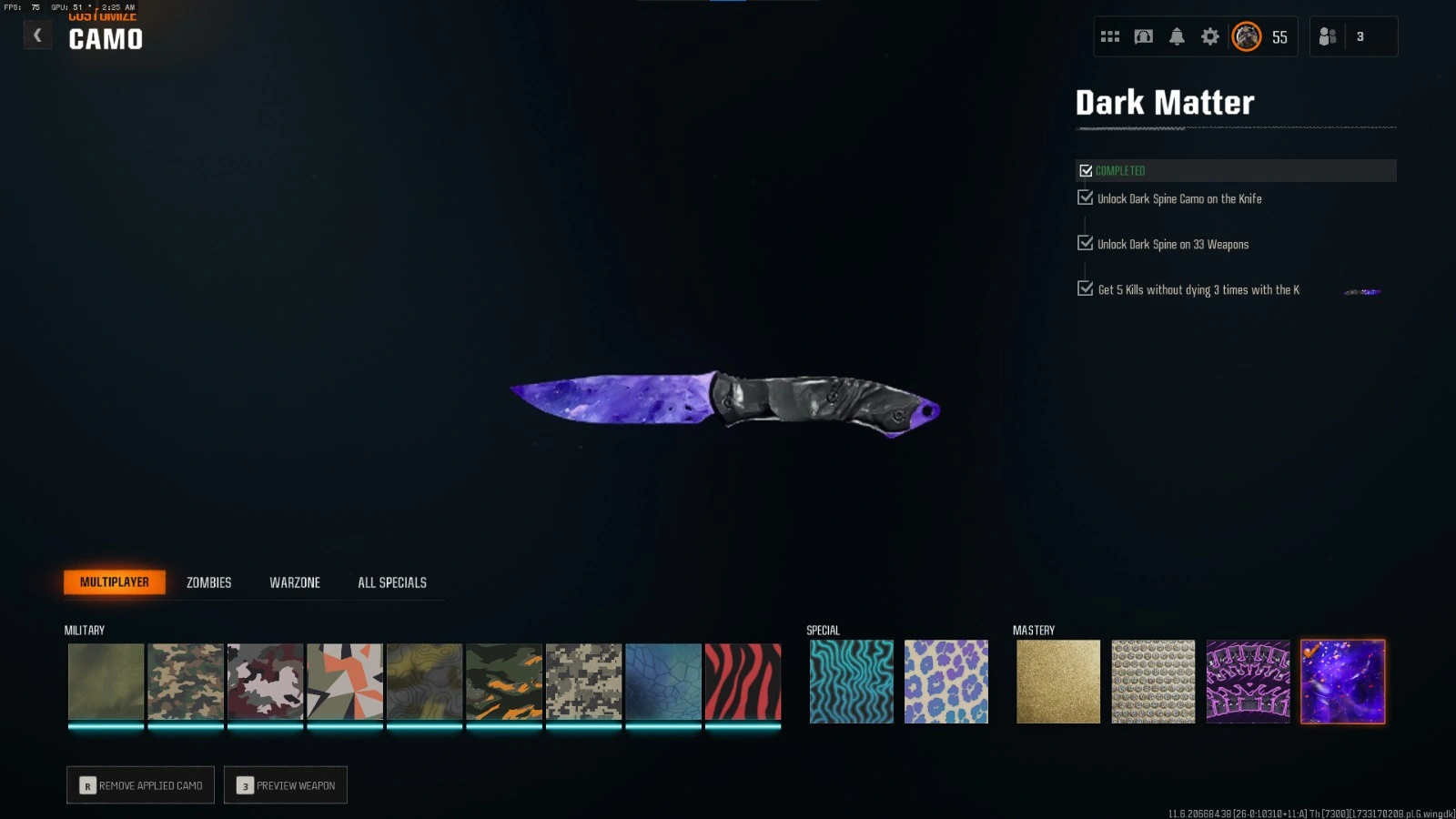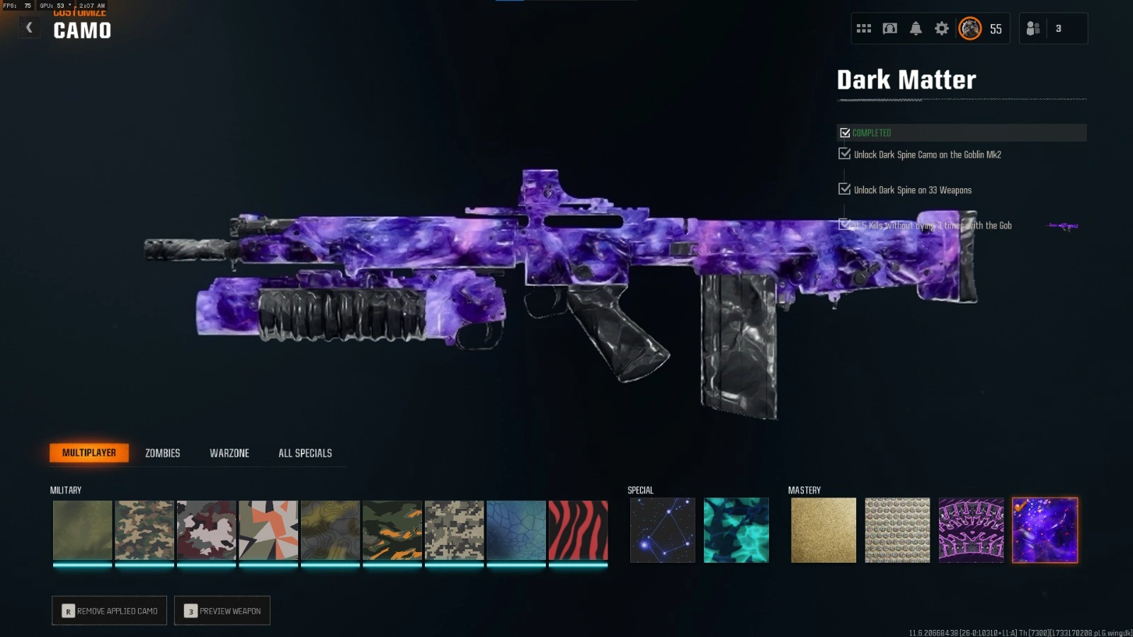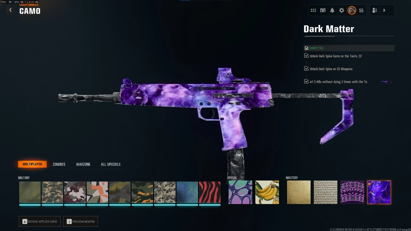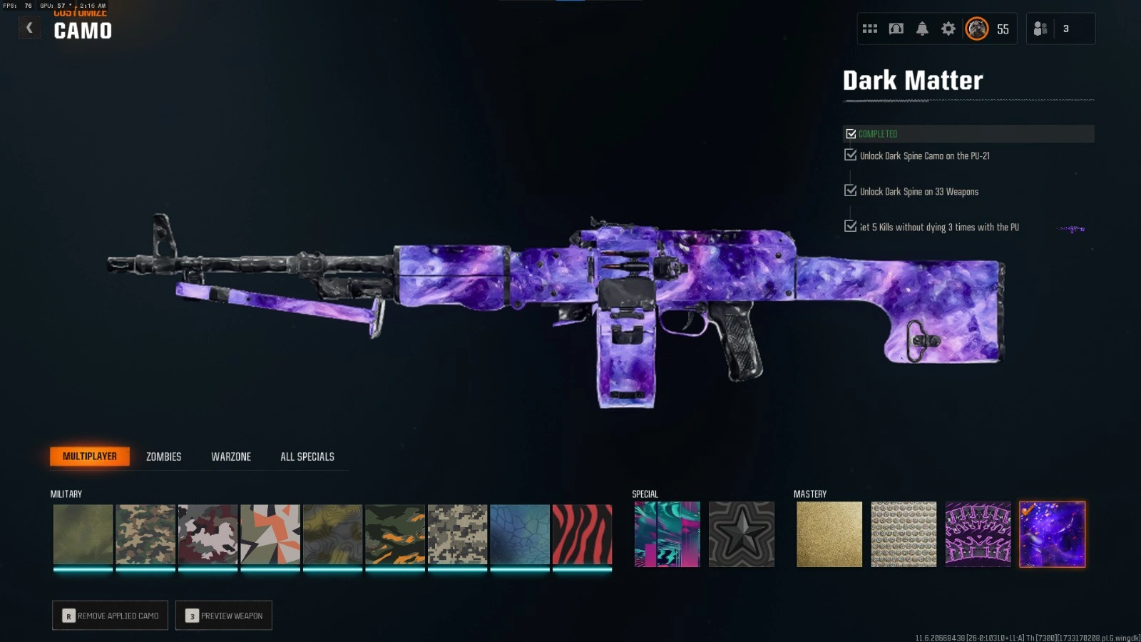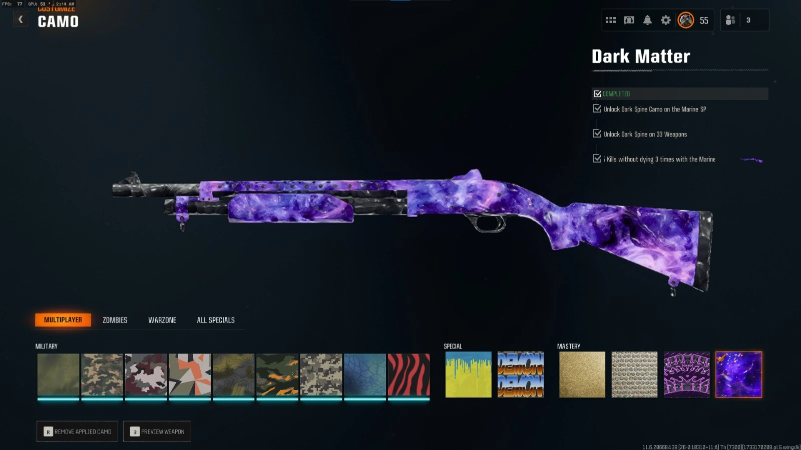 BO6 33 guns Dark Matter 🦮 Level 55 Prestige 1 🪞 Diamond 🧃 Dark Spine 🐻 Gold 🎍 All-platform support 🥁 Instant Delivery 🥬 HandLevelled
