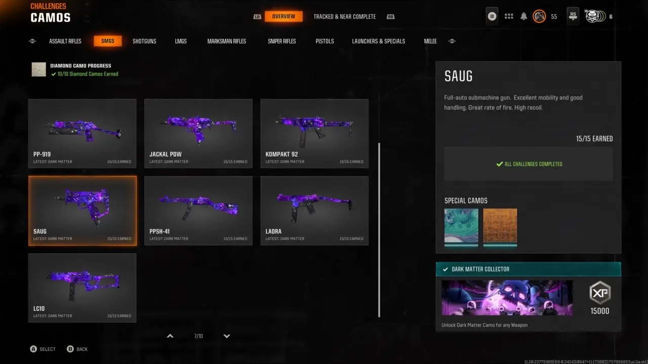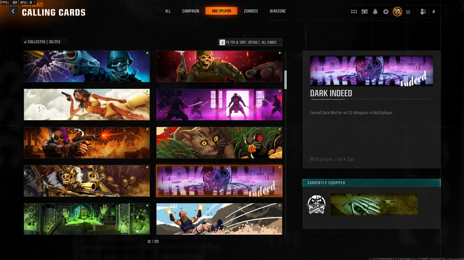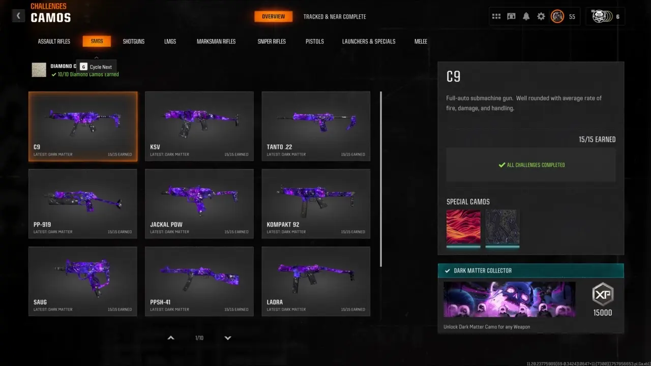 【🎮 Bo6 ⸱】 Dark Matter Unlocked ( include meta guns ) 🔥2 Nuke Cards 🚀 Level 55 Ready For Prestige 1 ✔️ Ready for ranked 🎯 Handmade 🔫 Linkable to all platforms 🌐