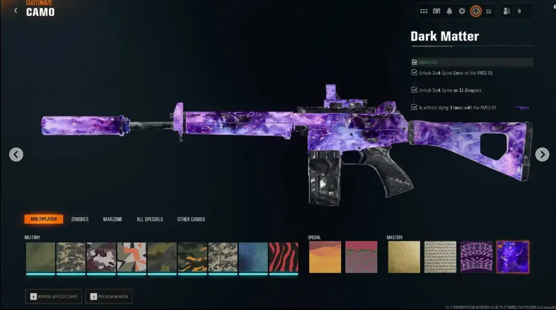 🦄 Dark Matter + 50 Wins 🎭 Level 55 | Ranked Ready 🎨 All Multiplayer Camos Unlocked🦂 Dark Matter Unlocked on all 33 BO6 Guns 🔮 Full Access 🔗 PC/XBOX/PS