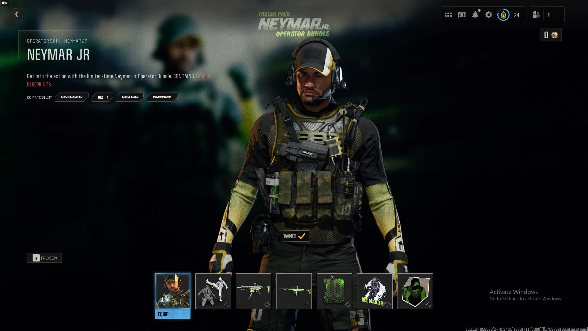 ⭐【WZ4/BO6】🔥 Rare Neymar Bundle | Groot-Creepy Clown-Spawn-Mosquita... | x3 Battlepass Skins | x60 Gun Leveled | XP Tokens