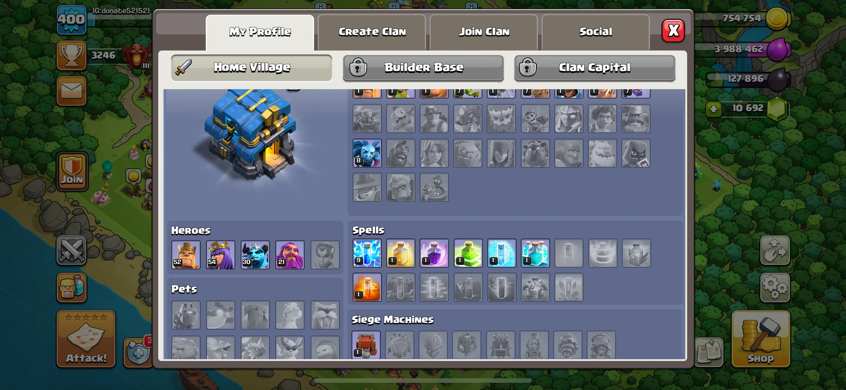12. Rarest 400+ Xp ! Townhall 12 Super Rare | 1 Crore + Donations | 10000+ Gems | On Buyer Email | Super Cheap Price |
