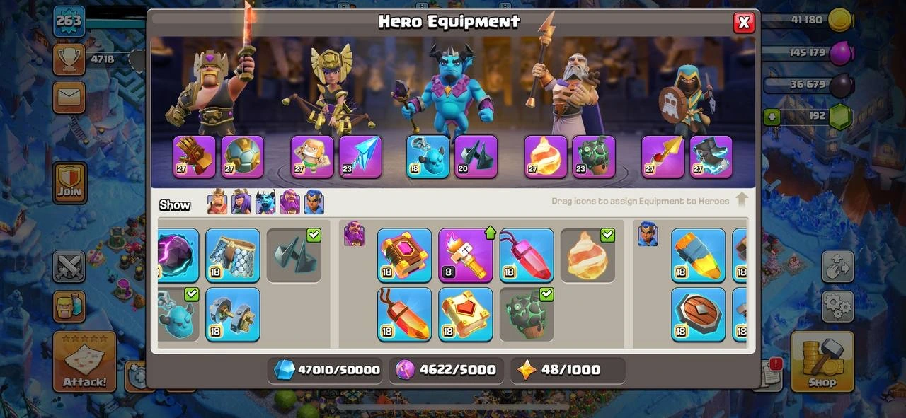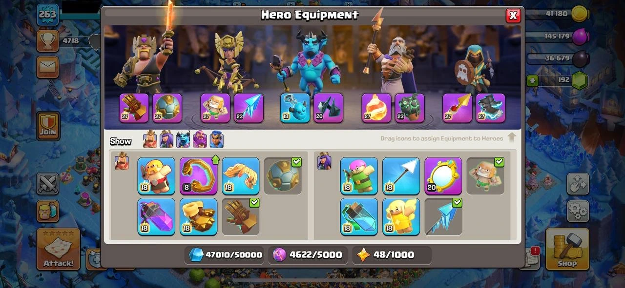 ⭕️ 27 EQUIPMENTS MAX ⭕️ TH 17 MAX FULL 99% ⭕️ 8 EPIC MAX ALMOST ⭕️ 4000+ WARSTARS ⭕️ 30K LEGEND CUPS ⭕️ SUPERCHARGE MAX ⭕️ 5 HEROES MAX ⭕️ 2x SCENERIES ⭕️ S09