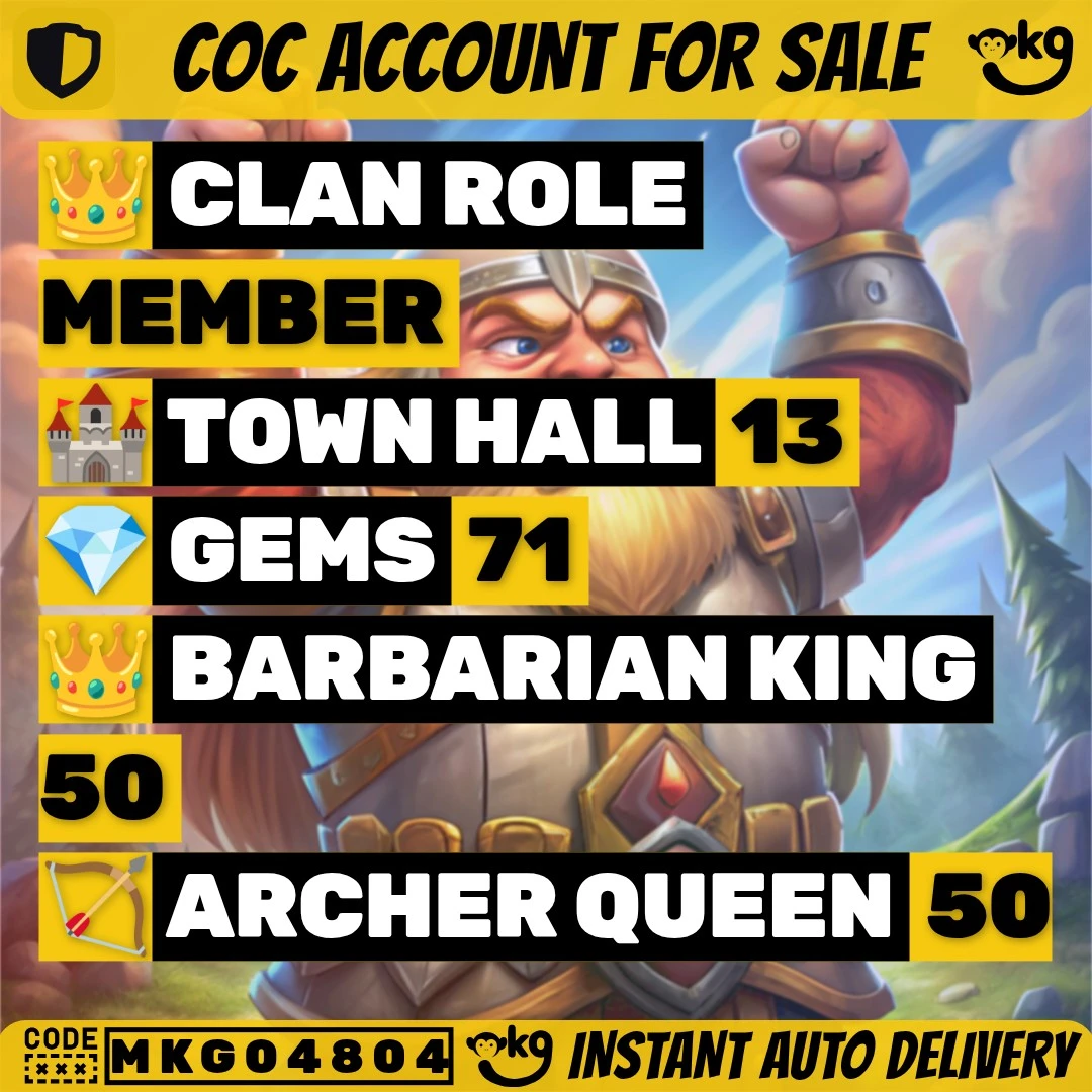 💎 Clash of Clans 🔥 TH13 SEMI ✨ 2 Epic Equipments ✨ Heroes 71-75-50-50-25 🔰 Complete Access 💎 Instant Delivery !MKG04804