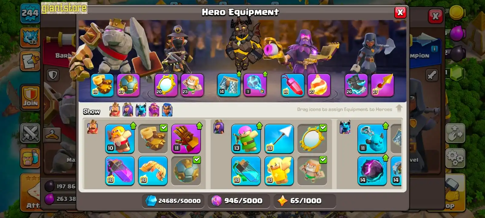 Big sale🔥TH 17 almost max🔥all max heroes🔥max pets☠️3 max epic equipment⭐️519 cwl medal💎4371 gems✅3 scenery and 22 heroes skin⚒️max builder’s apprentice