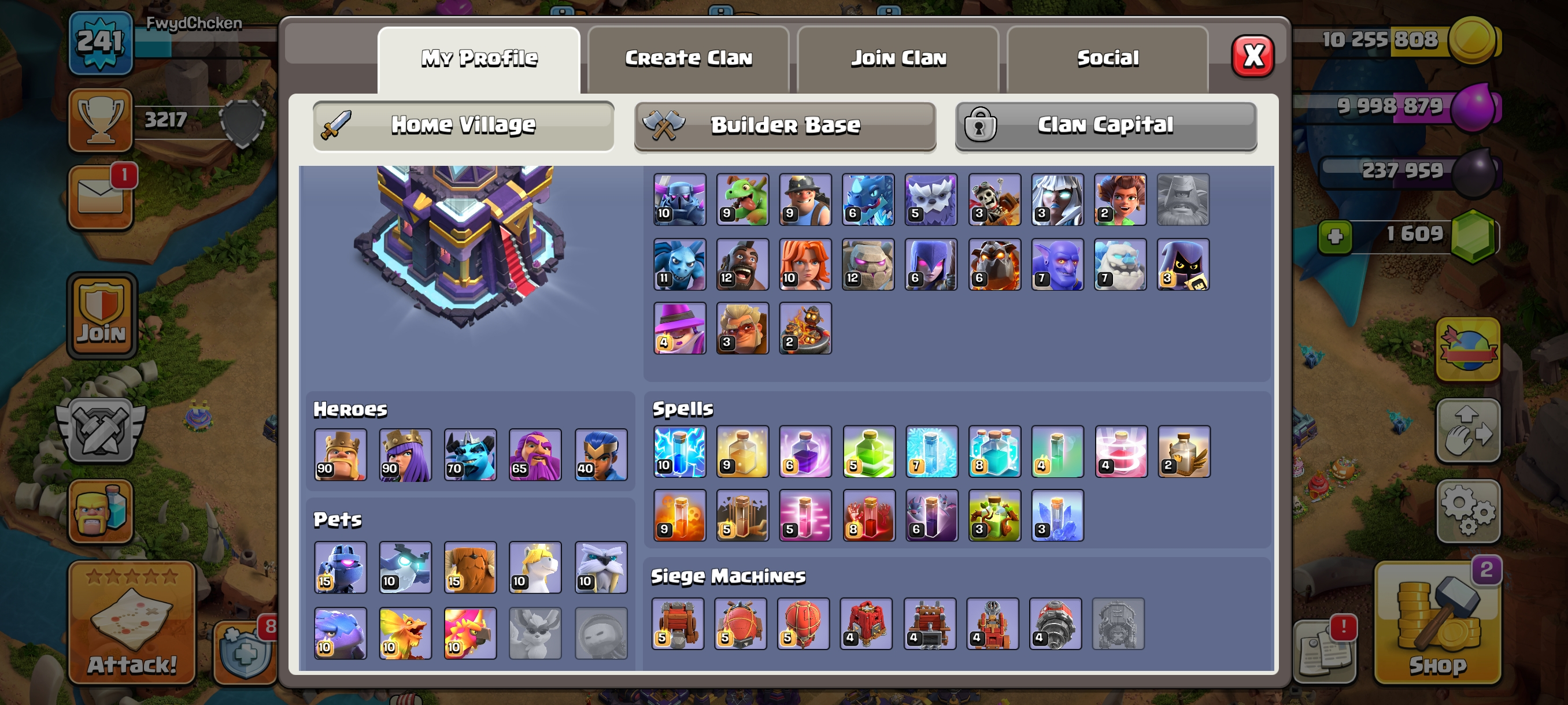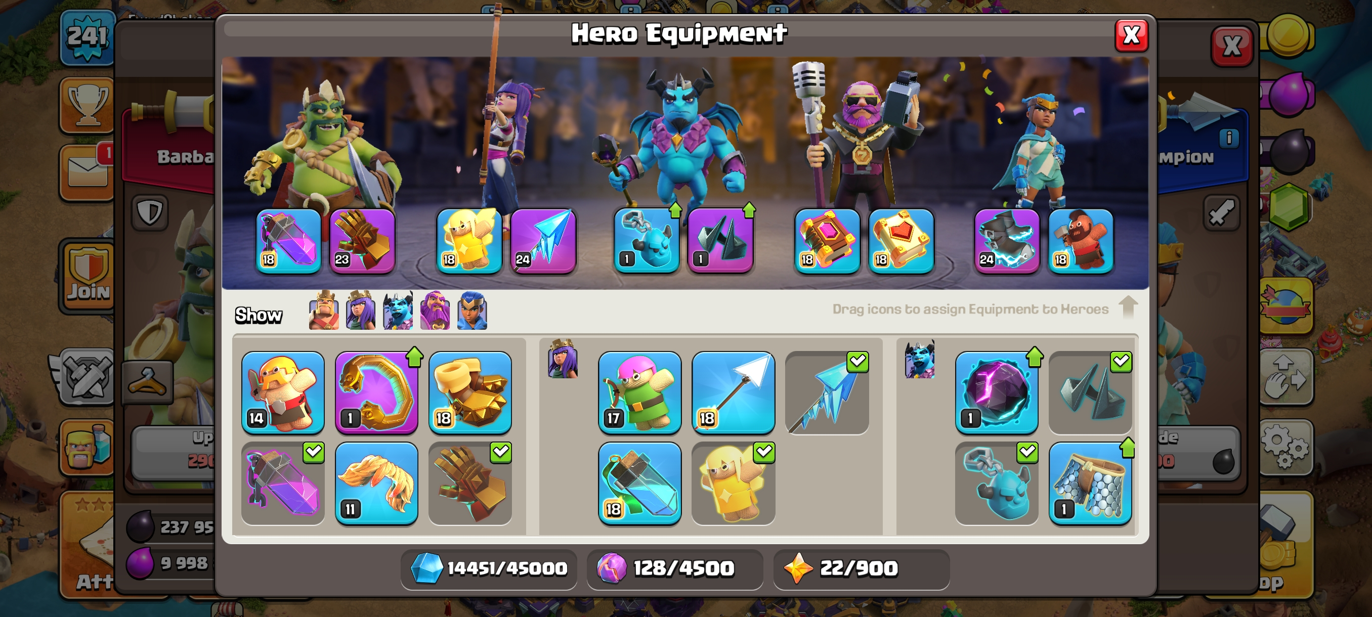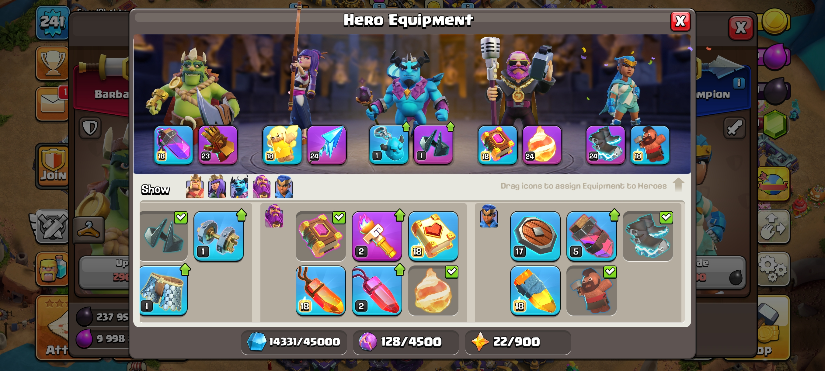 Builder Rest-Th15 Both Village Full Max-GG-FA-FB-EB Epics 16 Equipment Max-Xp241-Hero 90-90-70-65-40-15 Skin-PeiMal SceNERY-Nc 1000