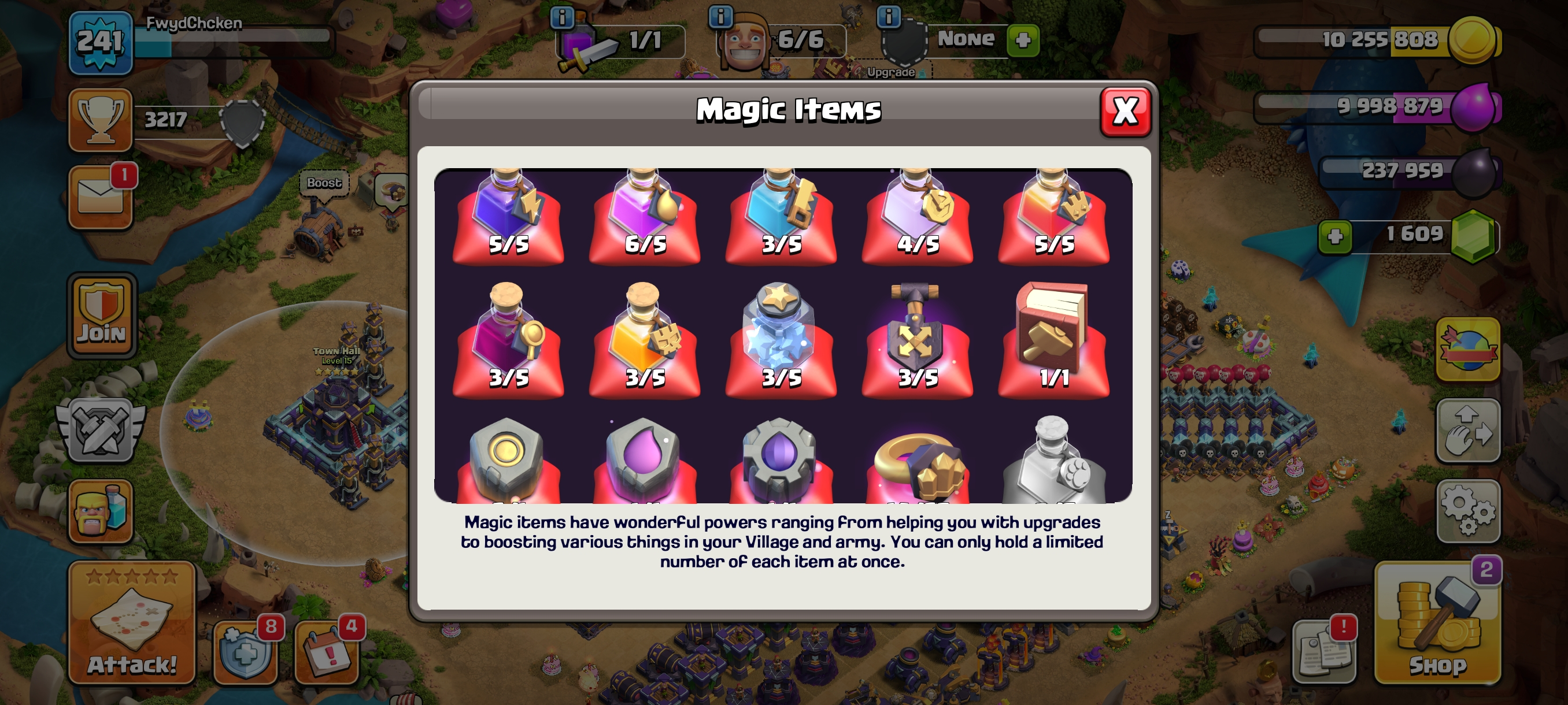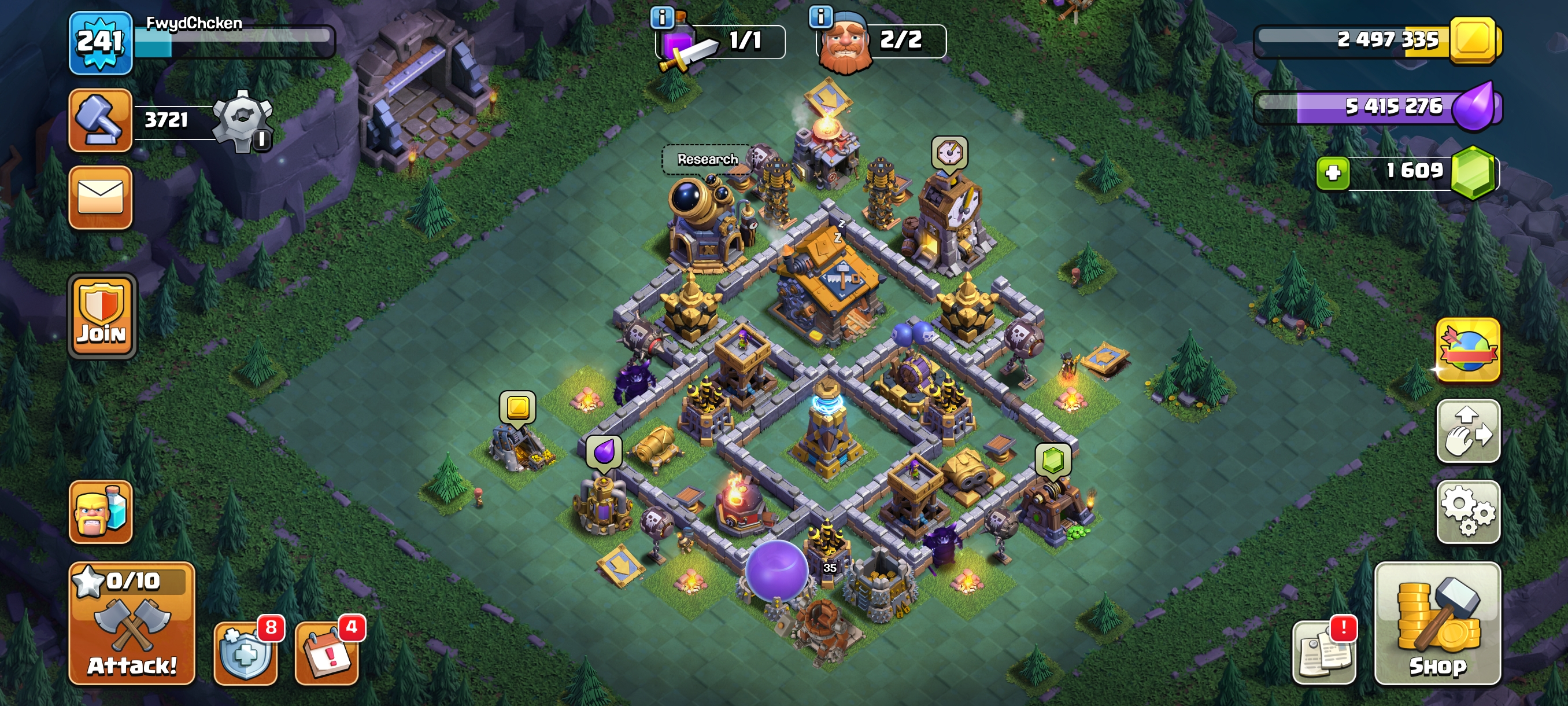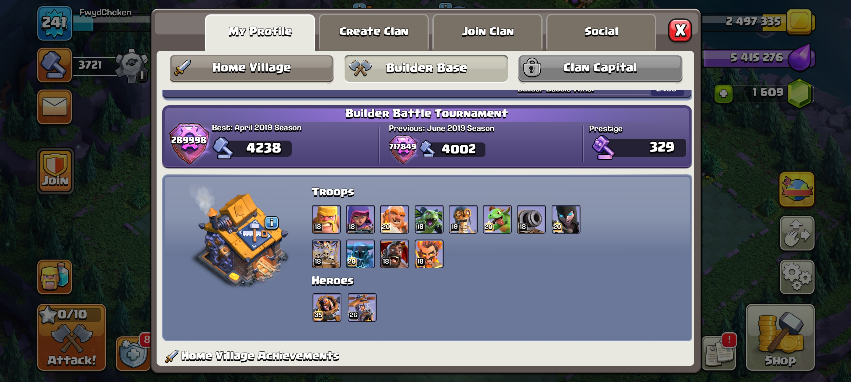 Builder Rest-Th15 Both Village Full Max-GG-FA-FB-EB Epics 16 Equipment Max-Xp241-Hero 90-90-70-65-40-15 Skin-PeiMal SceNERY-Nc 1000