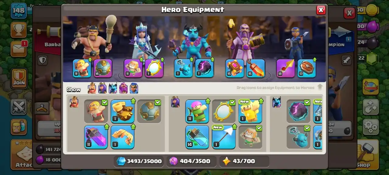 Cheap✅Town hall 13 MAX🔥max heroes🔥max troops☠️4 epic equipment✅7 heroes skin