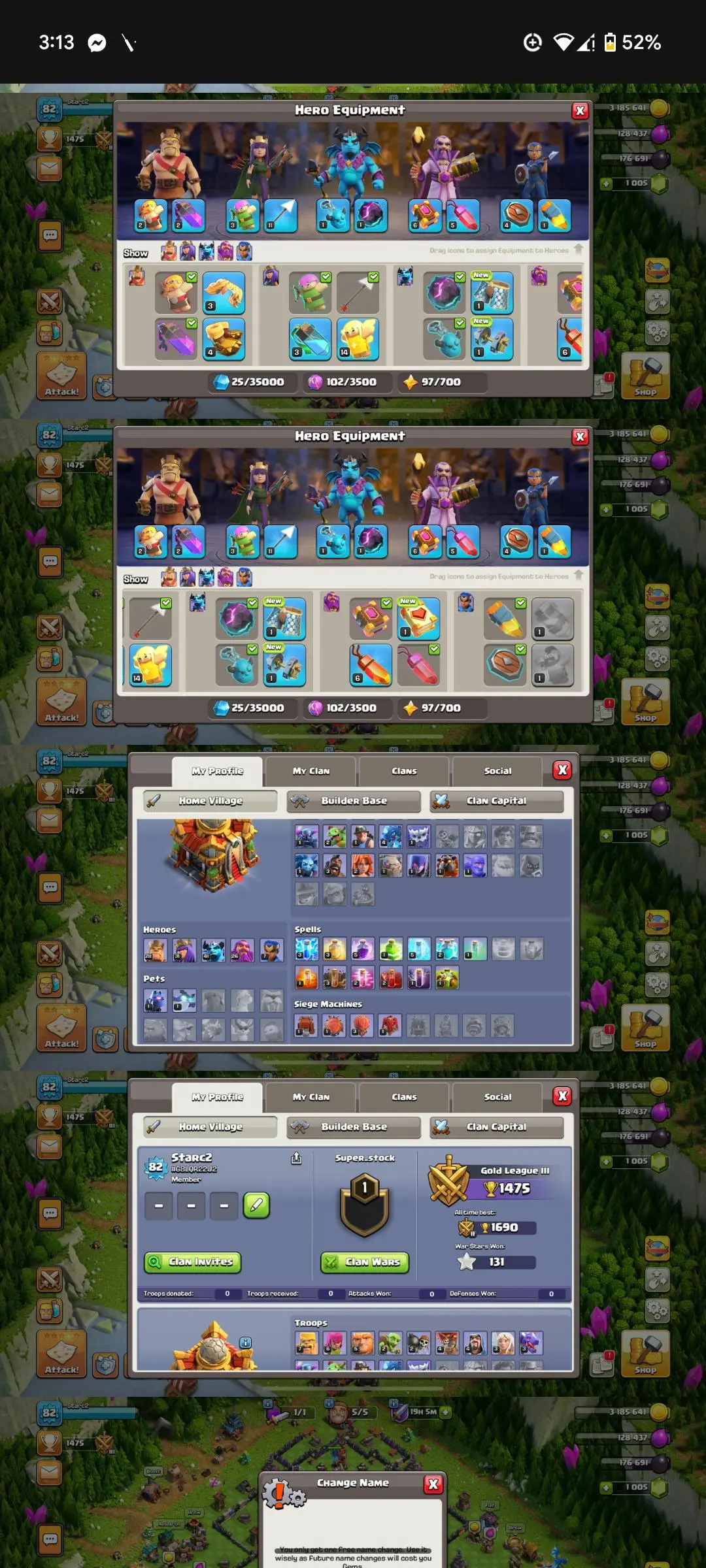 FAST DEAL | TH16 RARE MAX ACCOUNT | HERO'S: 28-31-41-26-7 | NAME CHANGE FREE | BLACK WALL | GEMS 1000+ | XP- 82 | MAGIC SCENERY