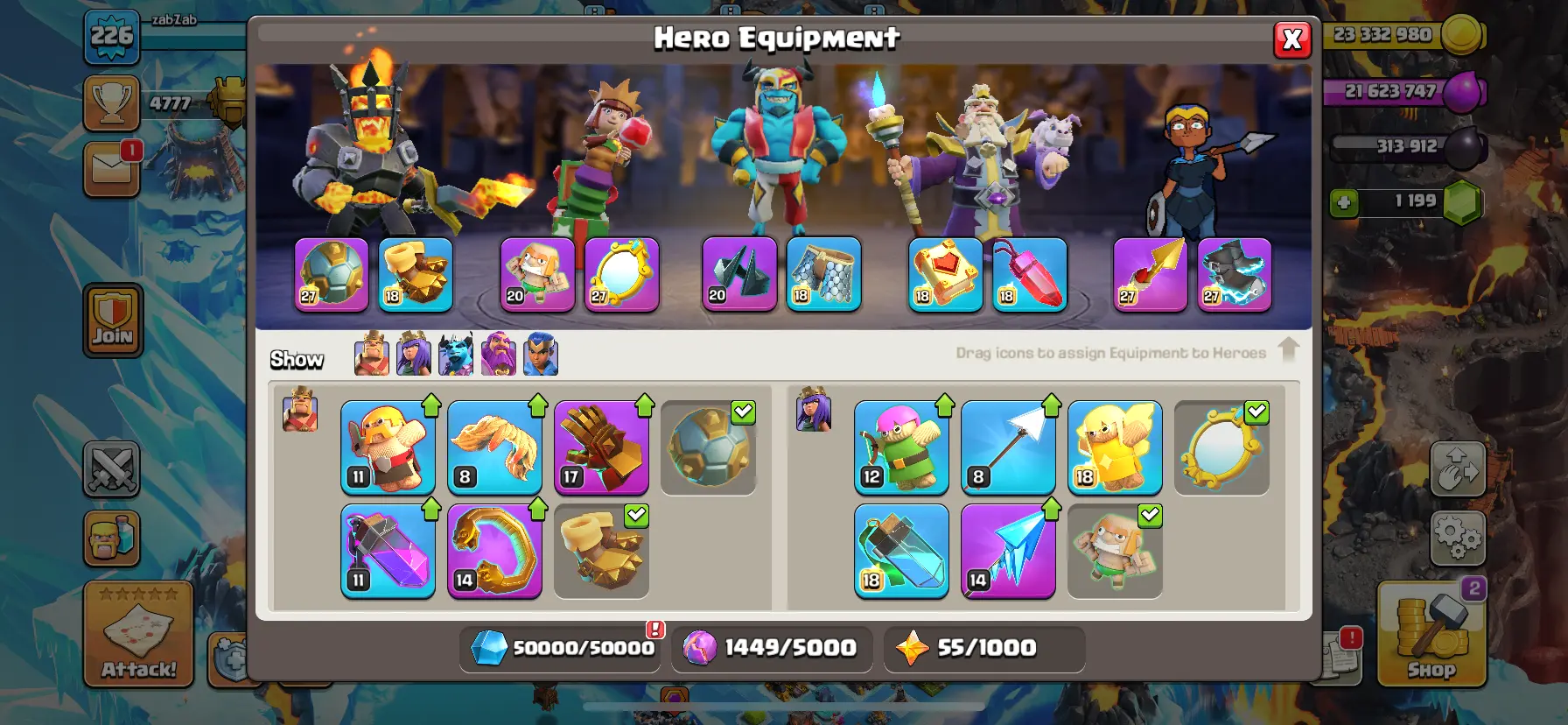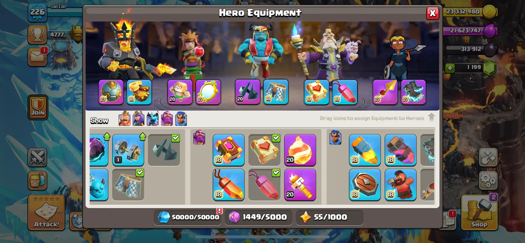 🍀Free Rename {3 Hero + 4 Epics Max }🛑TH 17 {29 OG Heroes Skins } 🛑Fire & Ice Scenery 🍀ALL 11 EPICS EQUIPMENT 🛑90-100-65-75-50 HEROES 🛑 226 XP LVL 🛑 OP MAGIC ITEMS 🛑 FREE RENAME 🛑OP HEROES SKIN 🛑 1063 WAR STAR 🛑 SUPER FAST INSTANT DELIVERY