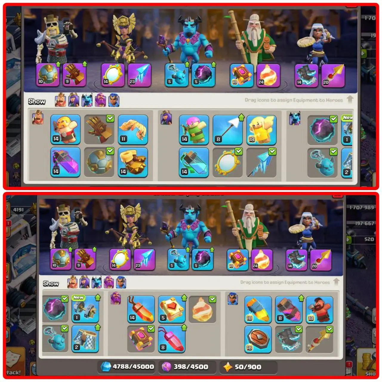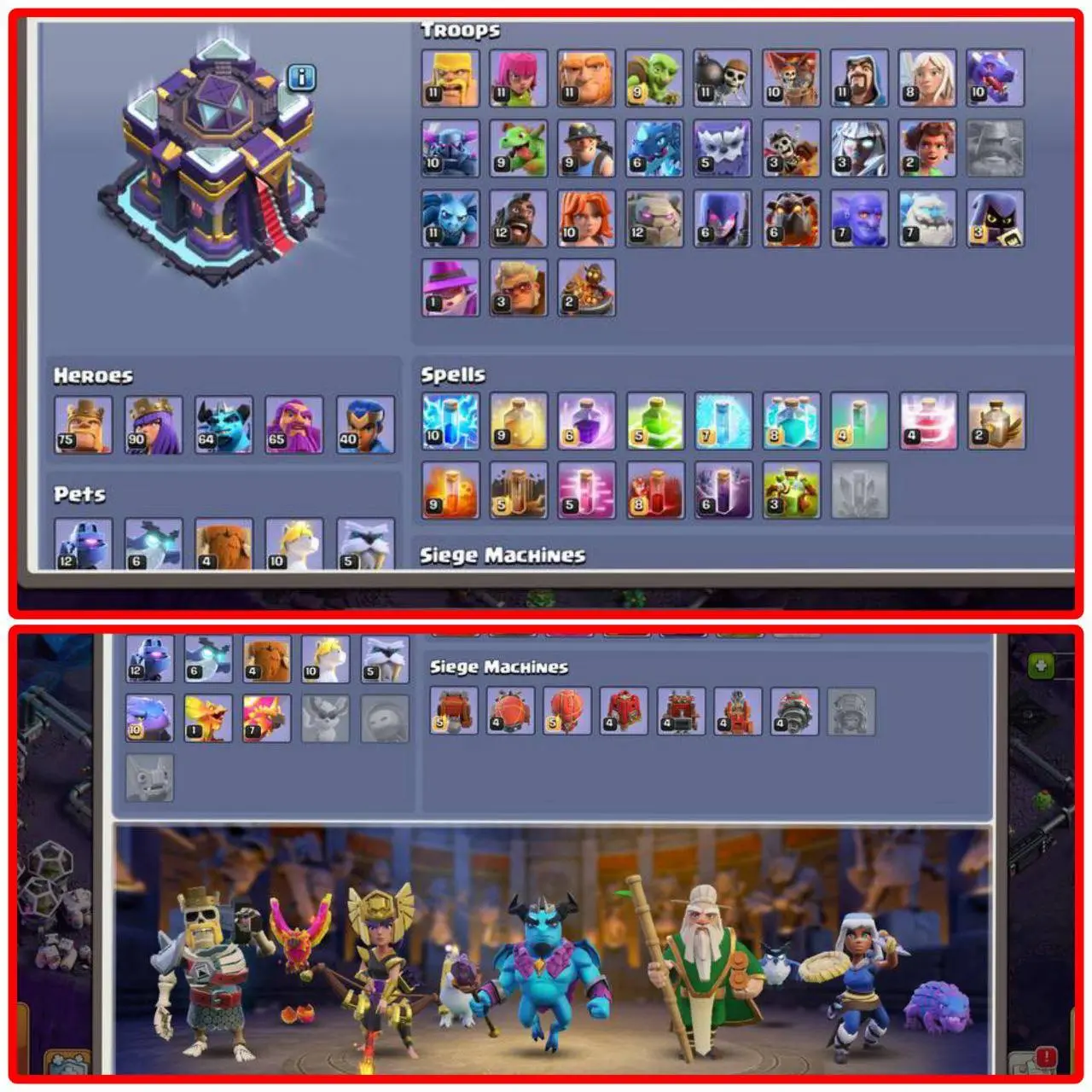 FULL MAX TH15 🔥 SPACE SCENERY 💫 3 HEROES MAXED [75-90-64-65-40] ✨ COMPLETE MAX WALLS ⚡️ HIGH EQUIPMENTS (7 EPIC EQUIPMENTS) 💥 BUILDER HALL 10 ⭐️ {233 EXP} ☠️ FEW MEDALS & MAGIC ITEMS