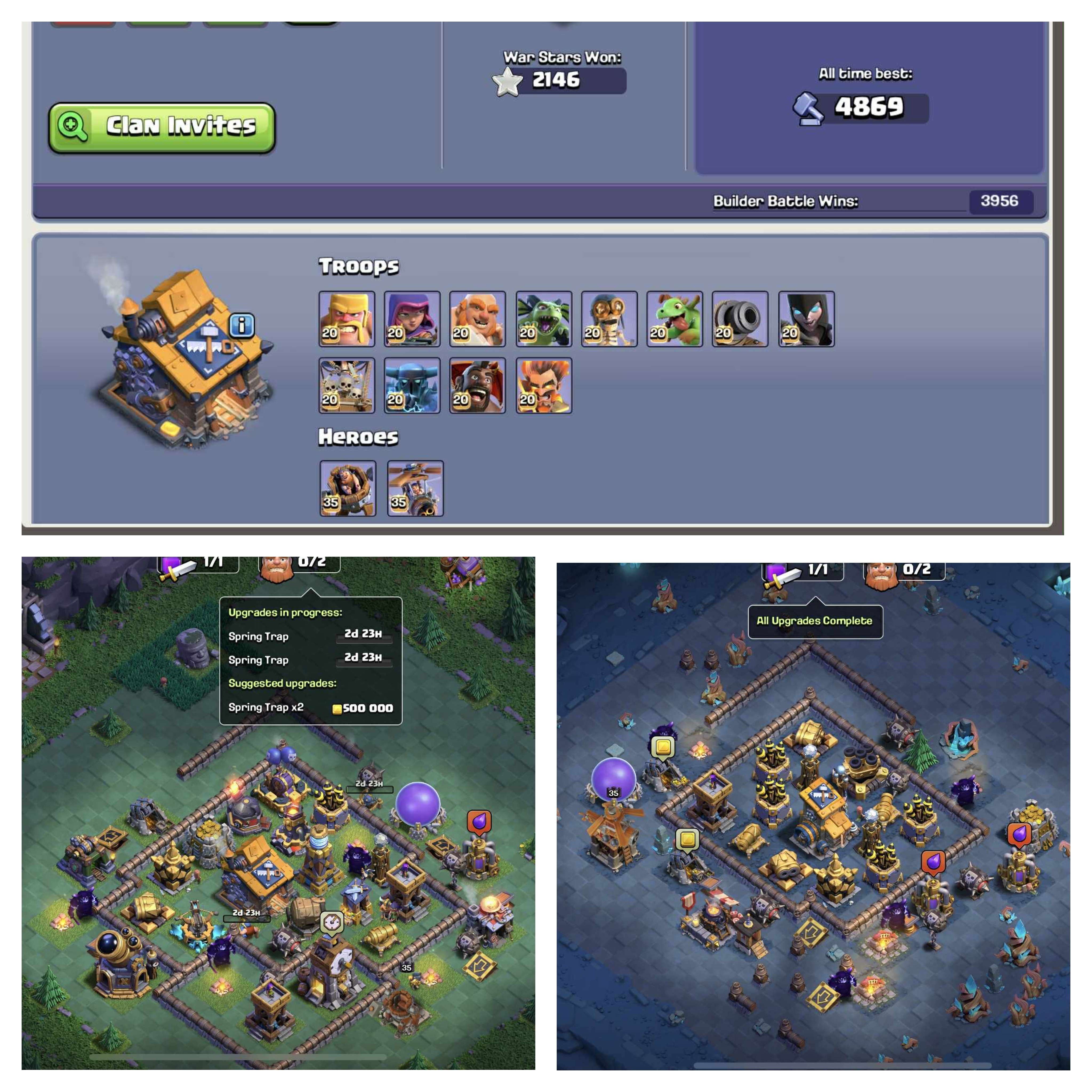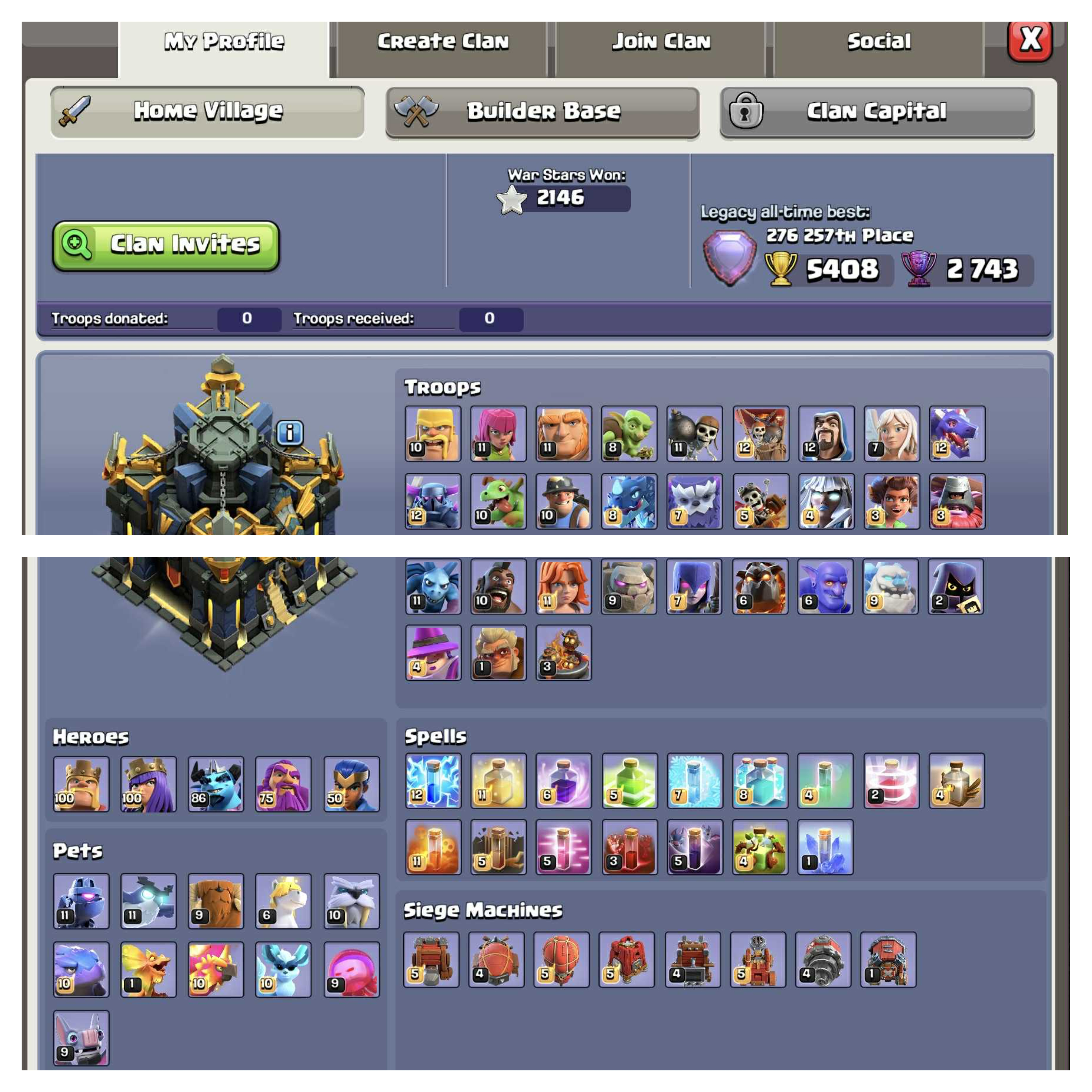 Level 255🌷TH 17 Max Near🌷4 Heroes Max🌷Builder Base Max🌷Defense Max