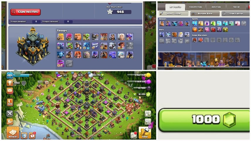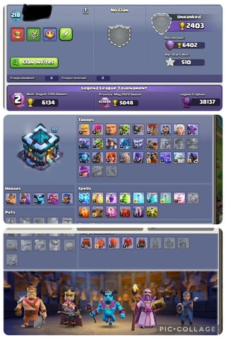 🔥RARE ⸱ 40k+ GEMS 💎 MAXED TH 17 + MAXED BH 10 😉 HIGH XP ⸱ 254 😴 2736 RAID MEDALS 🎖️ 3 HEROES SKINS 😄 15 MAXED EQUIPMENTS 🥹 5k+ ATB 🏆 V231 ✨