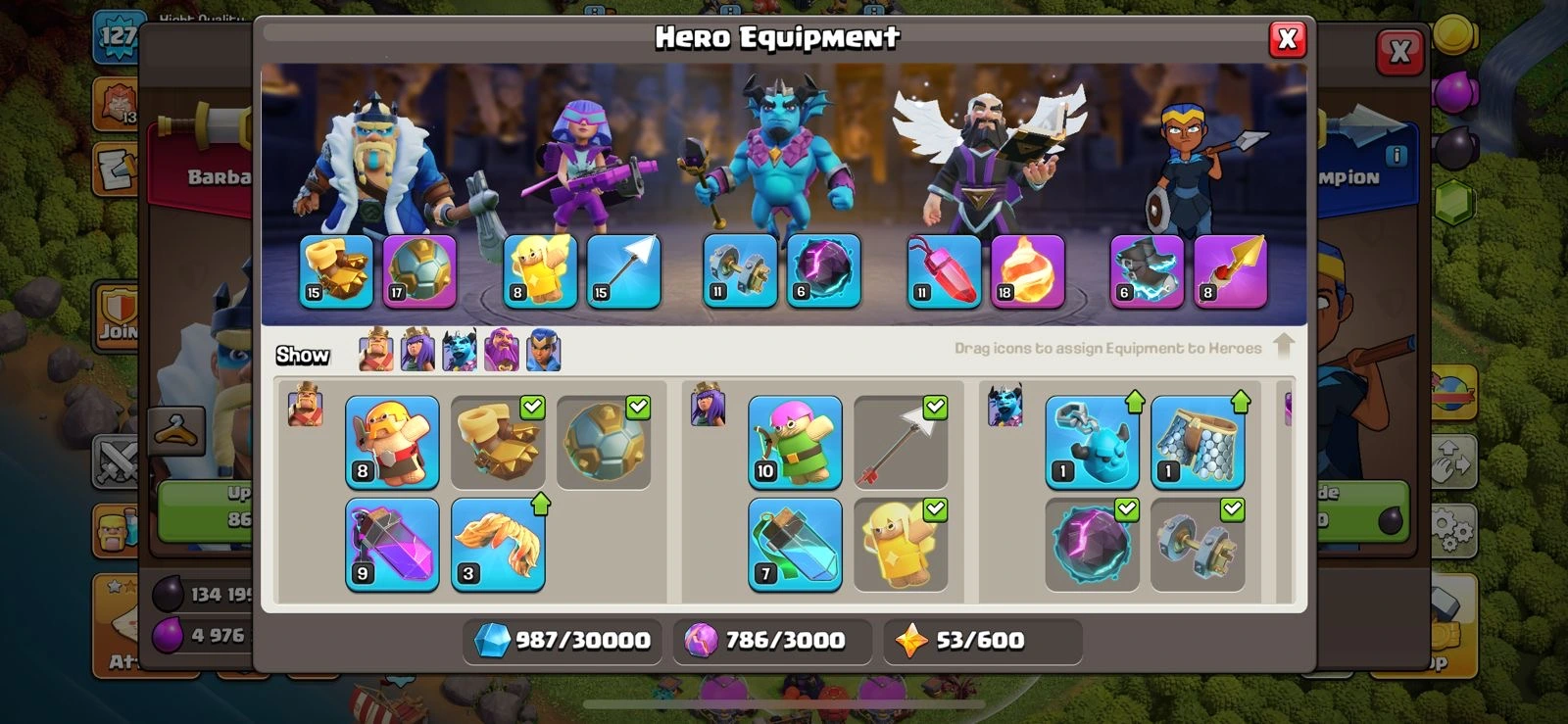 SEMI MAX TH 13🔥XP127🔥5 SKINS HEROES 50-66-38- 28-14🔥CHANGE NAME ON🔥3 EPIC EQUIPMENT🔥#25